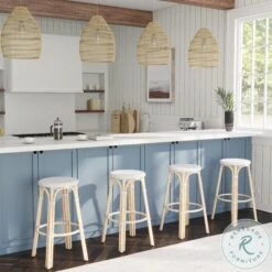 Woven Gray Kubu And Natural Greco Outdoor Bar Stool Set Of 2