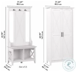 Key West Pure White Oak Entryway Storage Set With Hall Tree Shoe Bench And Tall Cabinet