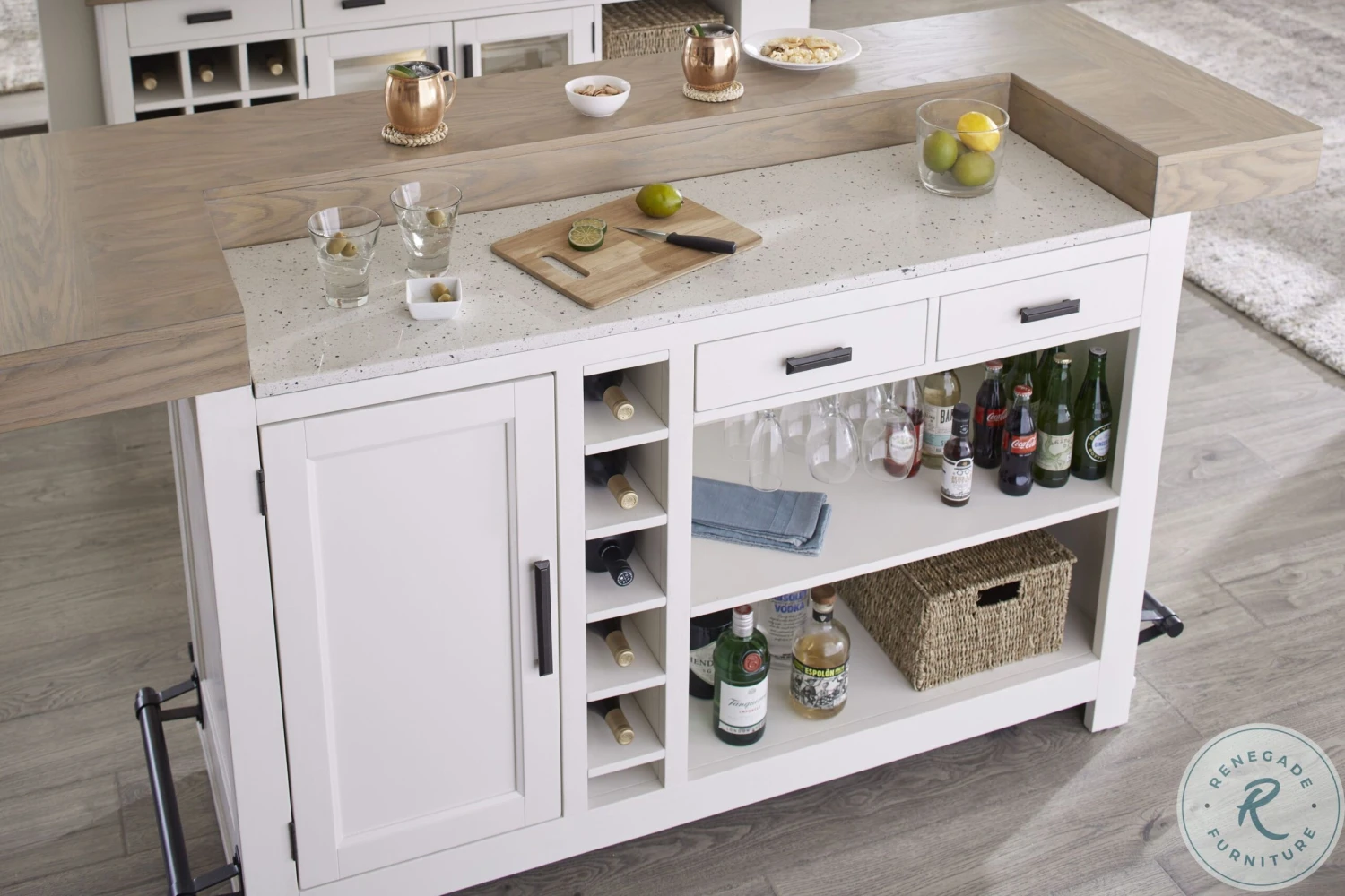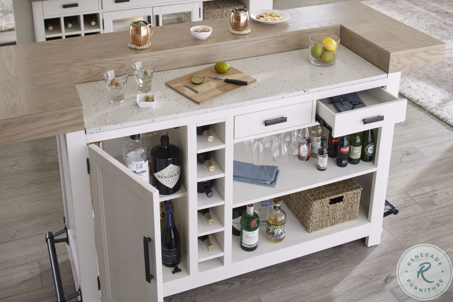 - Concealed storage behind doors and drawers