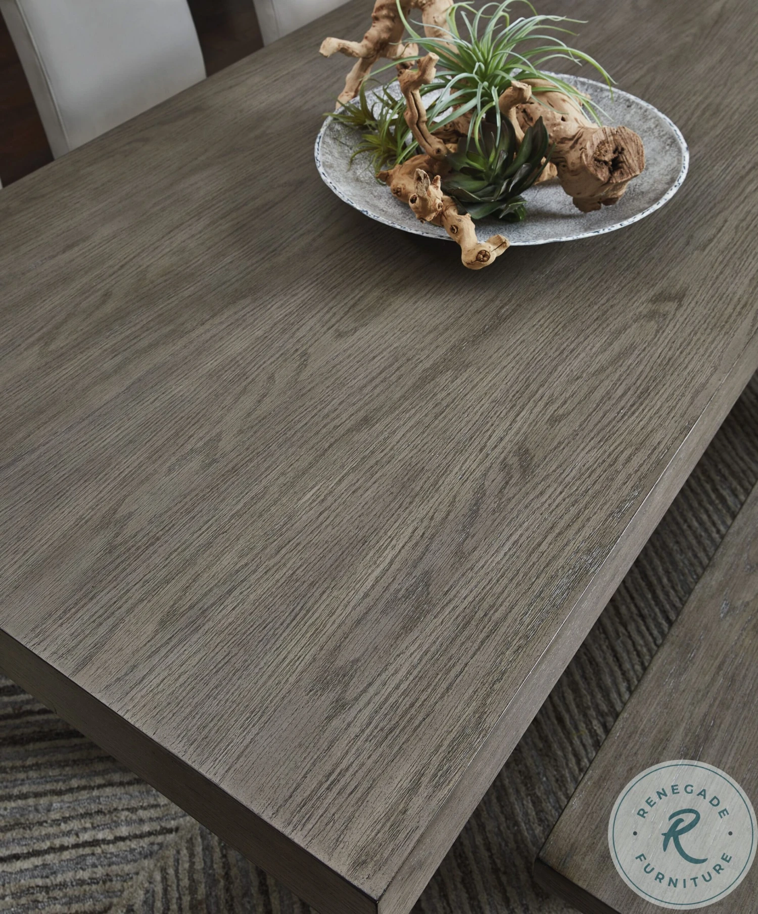 - Weathered gray finish