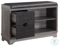 - Distressed grey and black finish