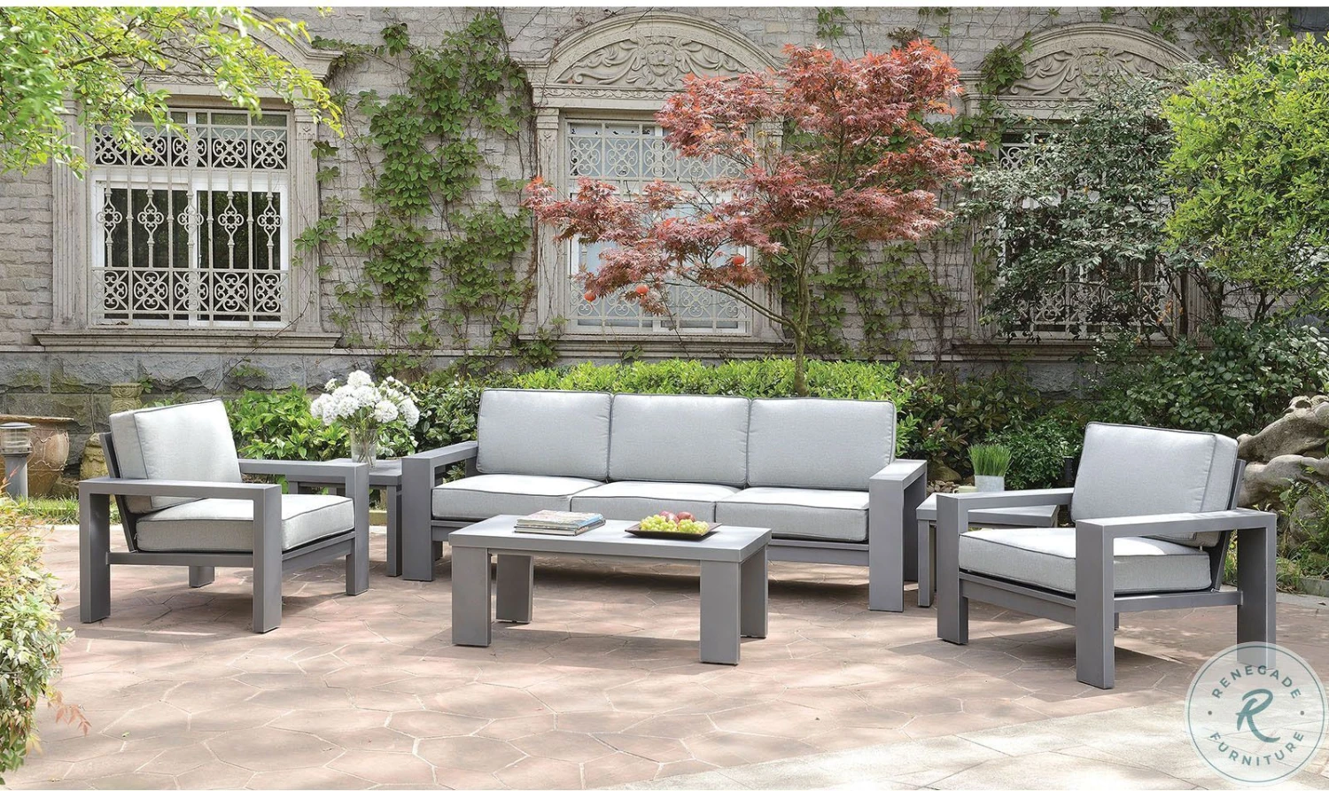 Spread out in your backyard with friends and family to take advantage of this outdoor collection. sophisticated convenience. This contemporary collection comes complete with roomy seats featuring overstuffed fabric cushions that offer a smooth feel and maximum satisfaction. Thick block legs attached to the aluminum frame provide the support you need while keeping it light for easy moving. Sleek in design with a modern contemporary feel, this plush outdoor collection is one that you’ll be glad you took home.
