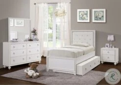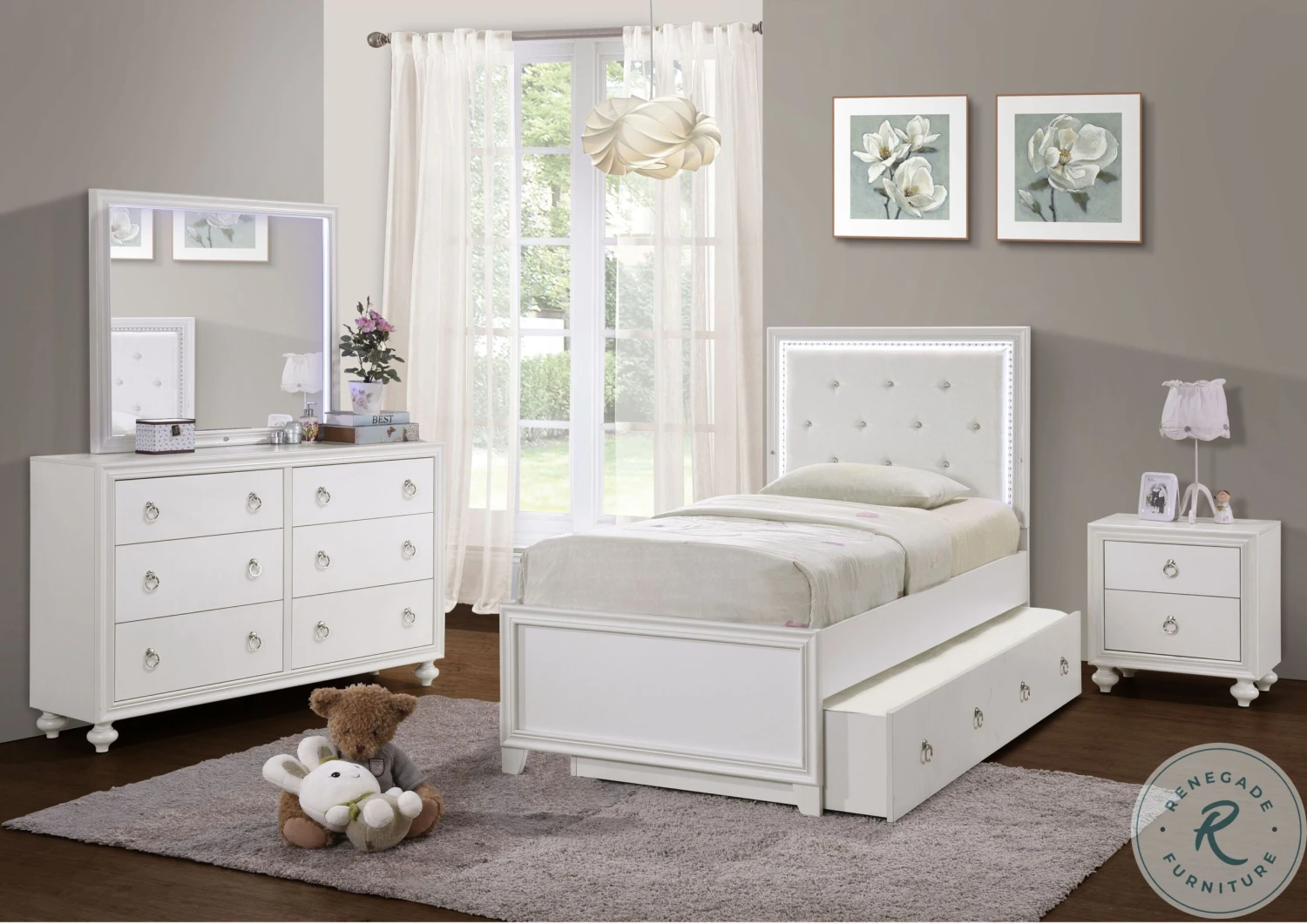 Bella White features sparkling gems, glam and modern style, with lighting to make this kids bedroom a restful retreat worthy of a pop star.