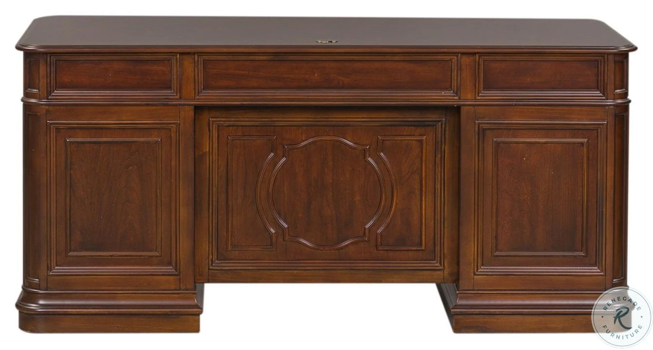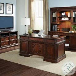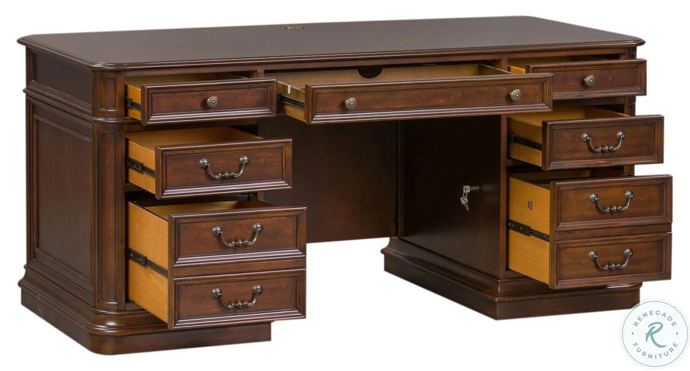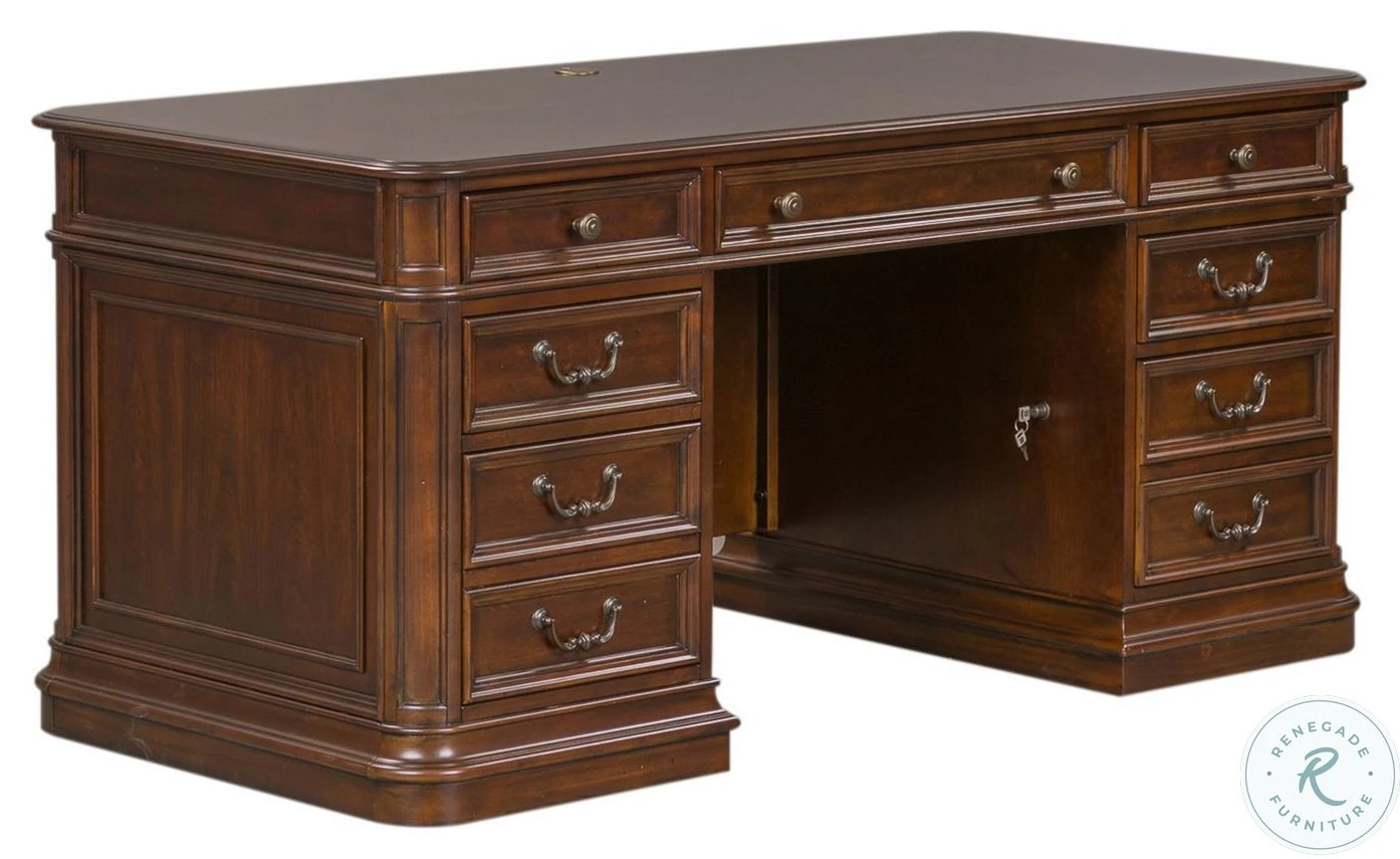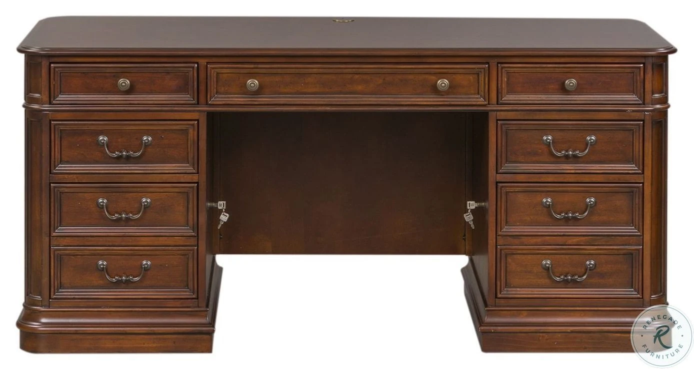 Create scale, add comfort, and define your style with Brayton Manor Home Office. A classic desk and credenza/hutch combination can satisfy your work habits as well as reflect your style. Brayton Manor combines a cognac finish with antique brass bail and knob hardware.