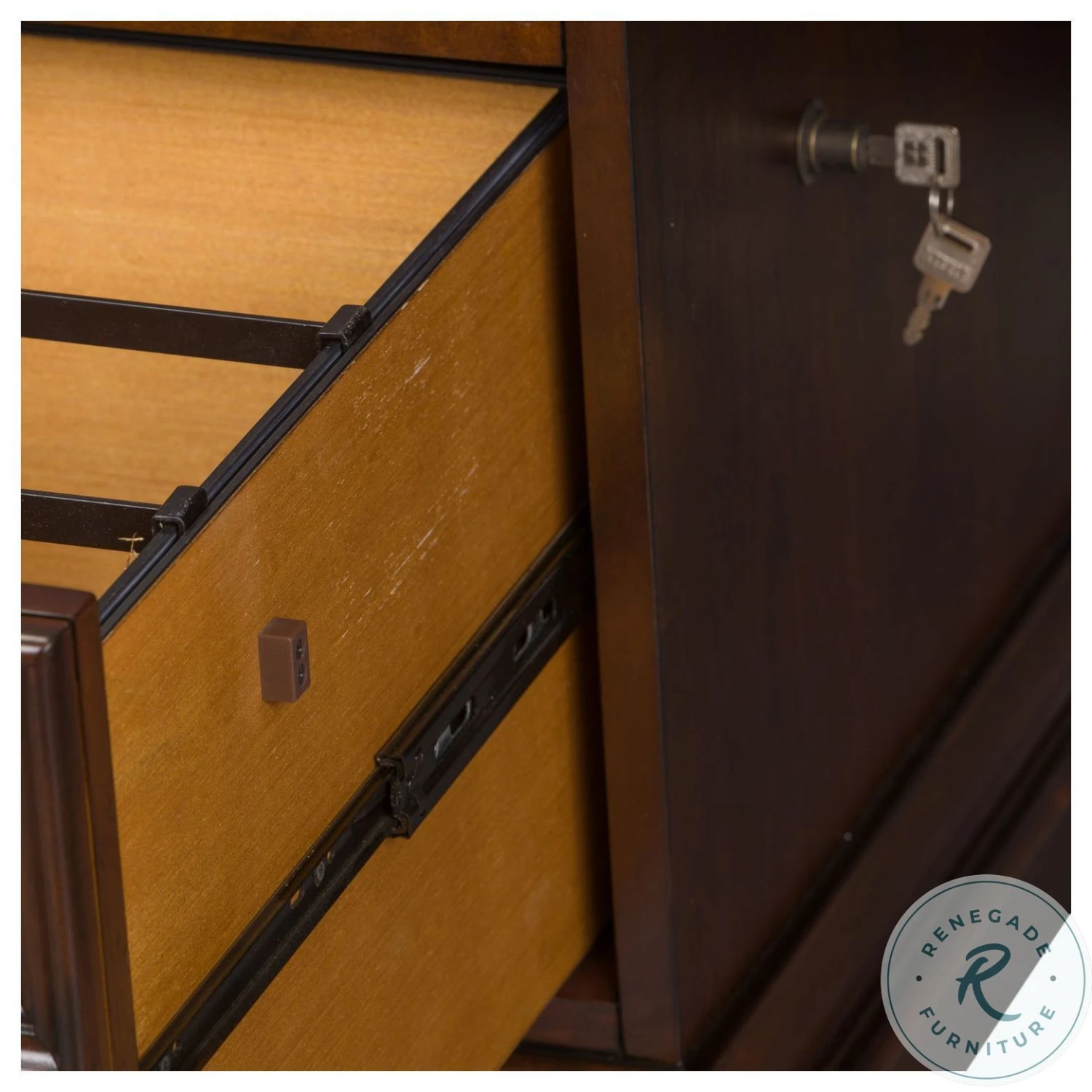 - Two locking file drawers with bluff-cut drawer fronts