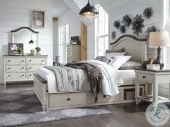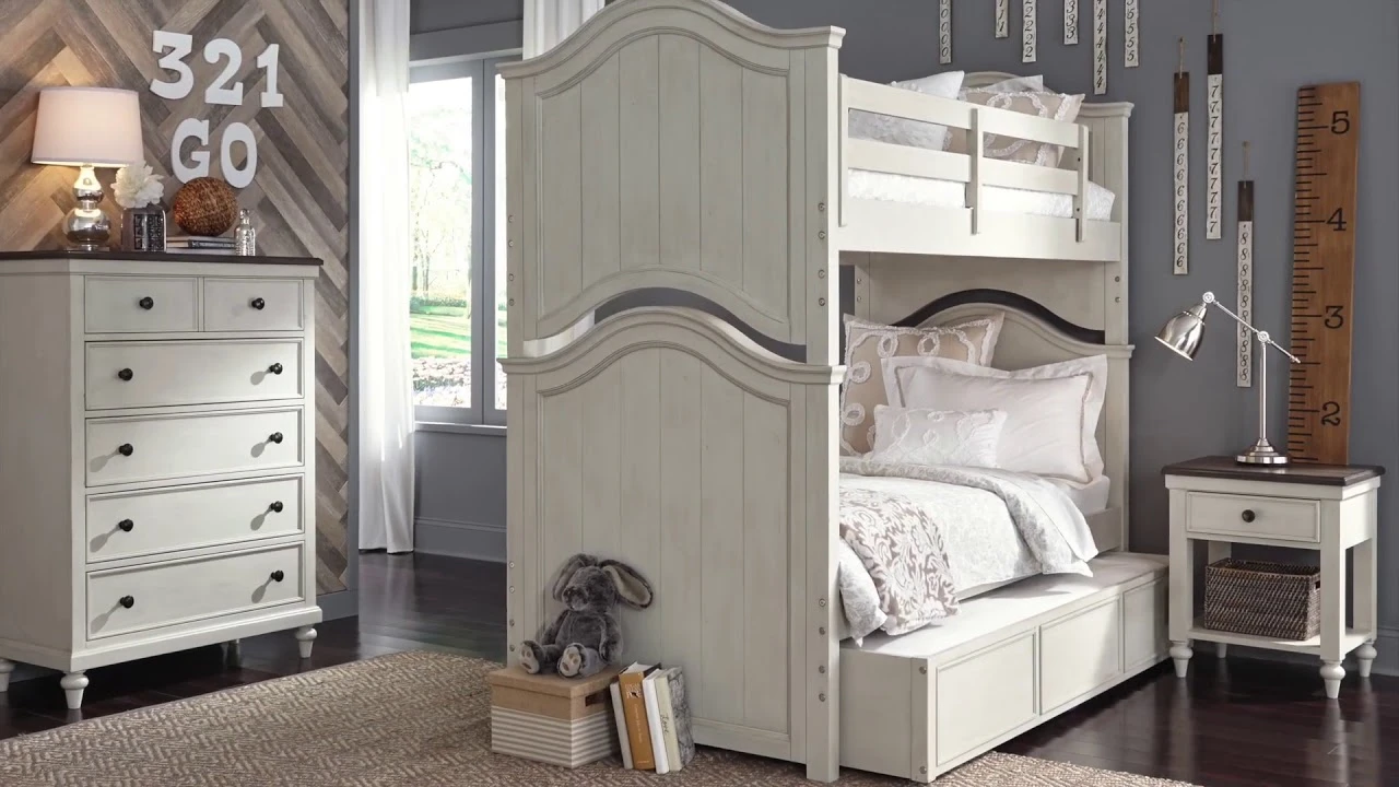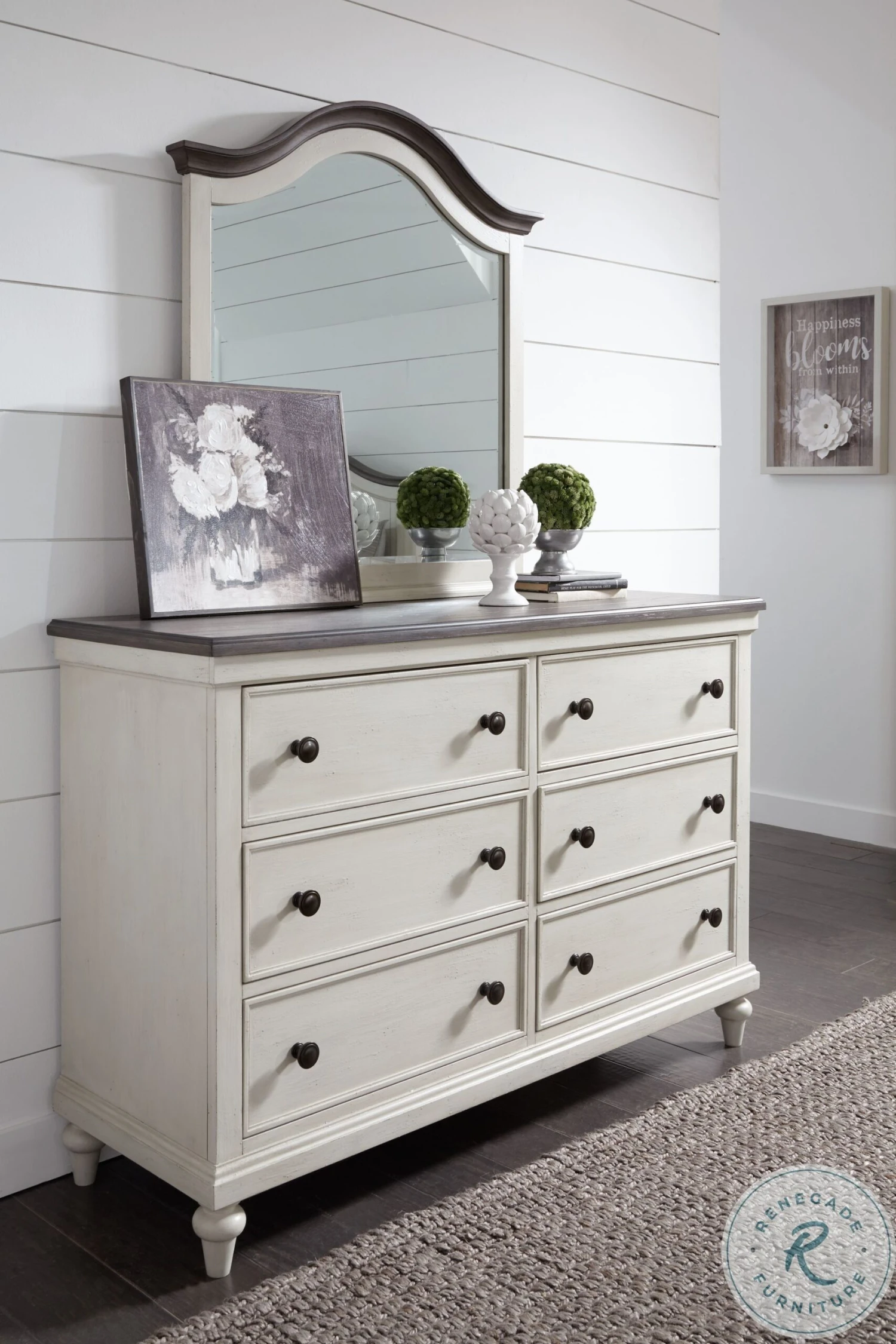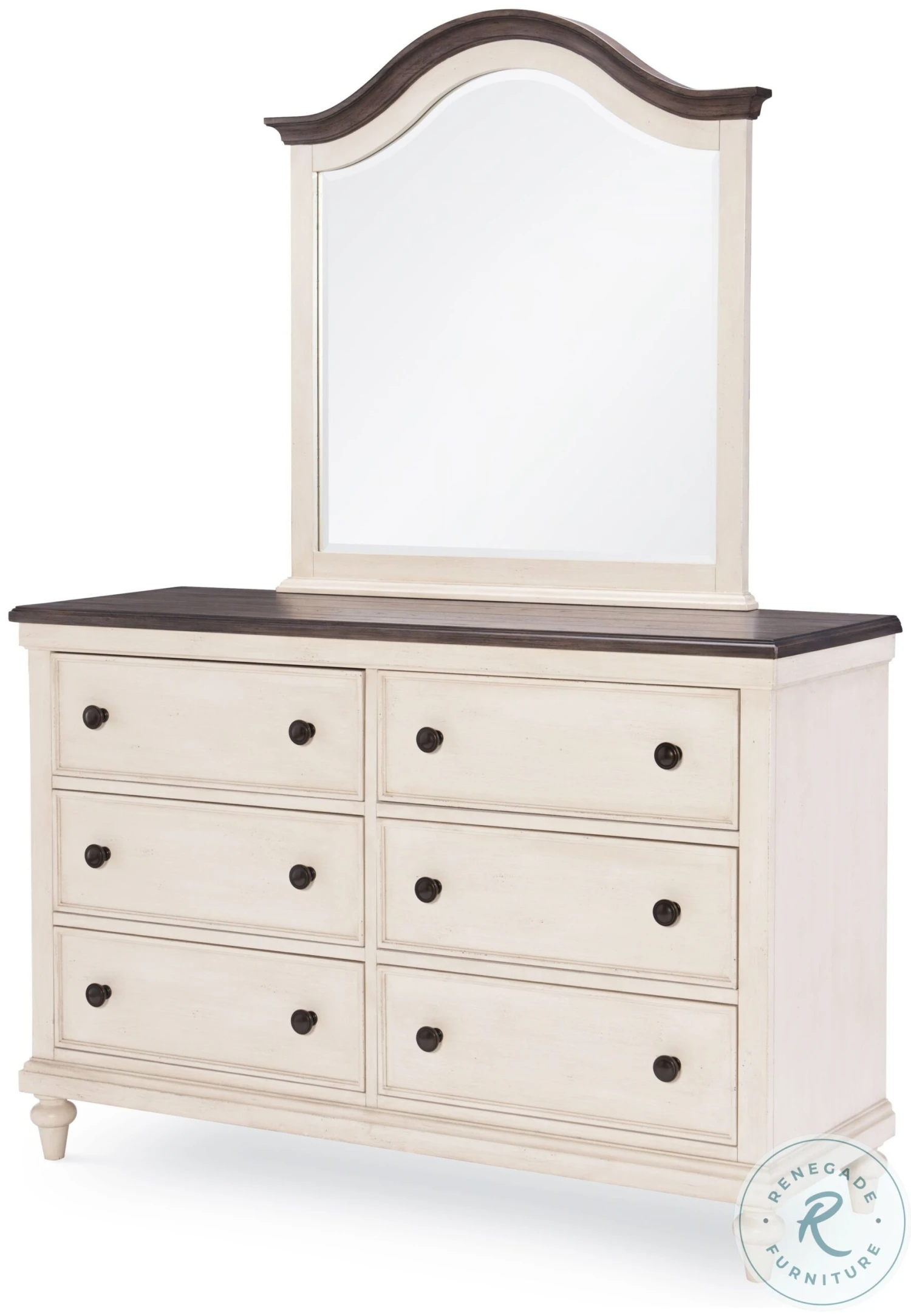 With a cozy, updated farmhouse look, Brookhaven is an inviting collection offering bedroom, dining and occasional pieces that will feel at home in multiple settings. The painted, Vintage Linen finish and Rustic Dark Elm finished tops compliment each other and add to the comfortable appeal of this group. Custom hexagon ring pulls and knobs in a dark, Oiled Bronze finish complete the look. Features such as felt-lined and cedar lined drawers, silver trays, built-in outlets and creative storage options add function to this total home collection.