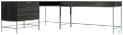 Coleman Collection from Bernhardt. Cinder finish on wood. Grey Mist finish on metal. Polished Stainless Steel base outlet with two USB ports included. Adjustable glides.