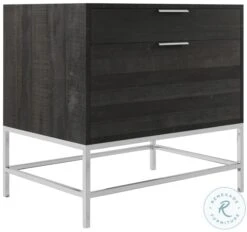 Coleman Collection from Bernhardt. Cinder finish on wood. Grey Mist finish on metal. Polished Stainless Steel base outlet with two USB ports included. Adjustable glides.
