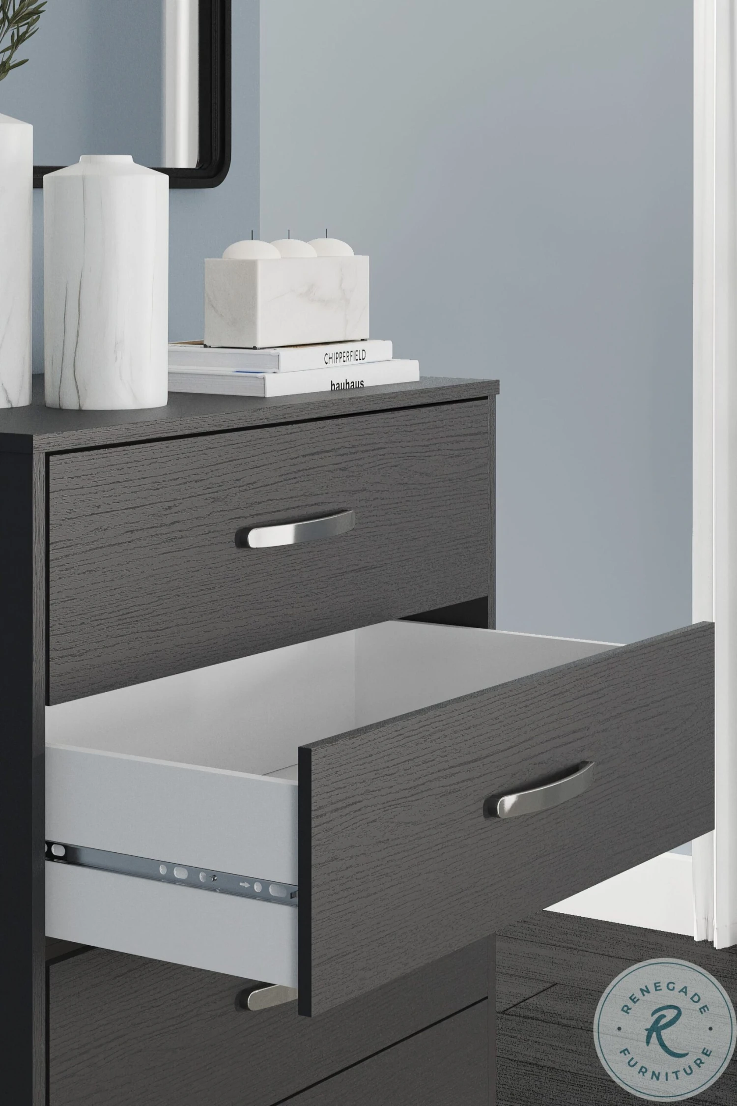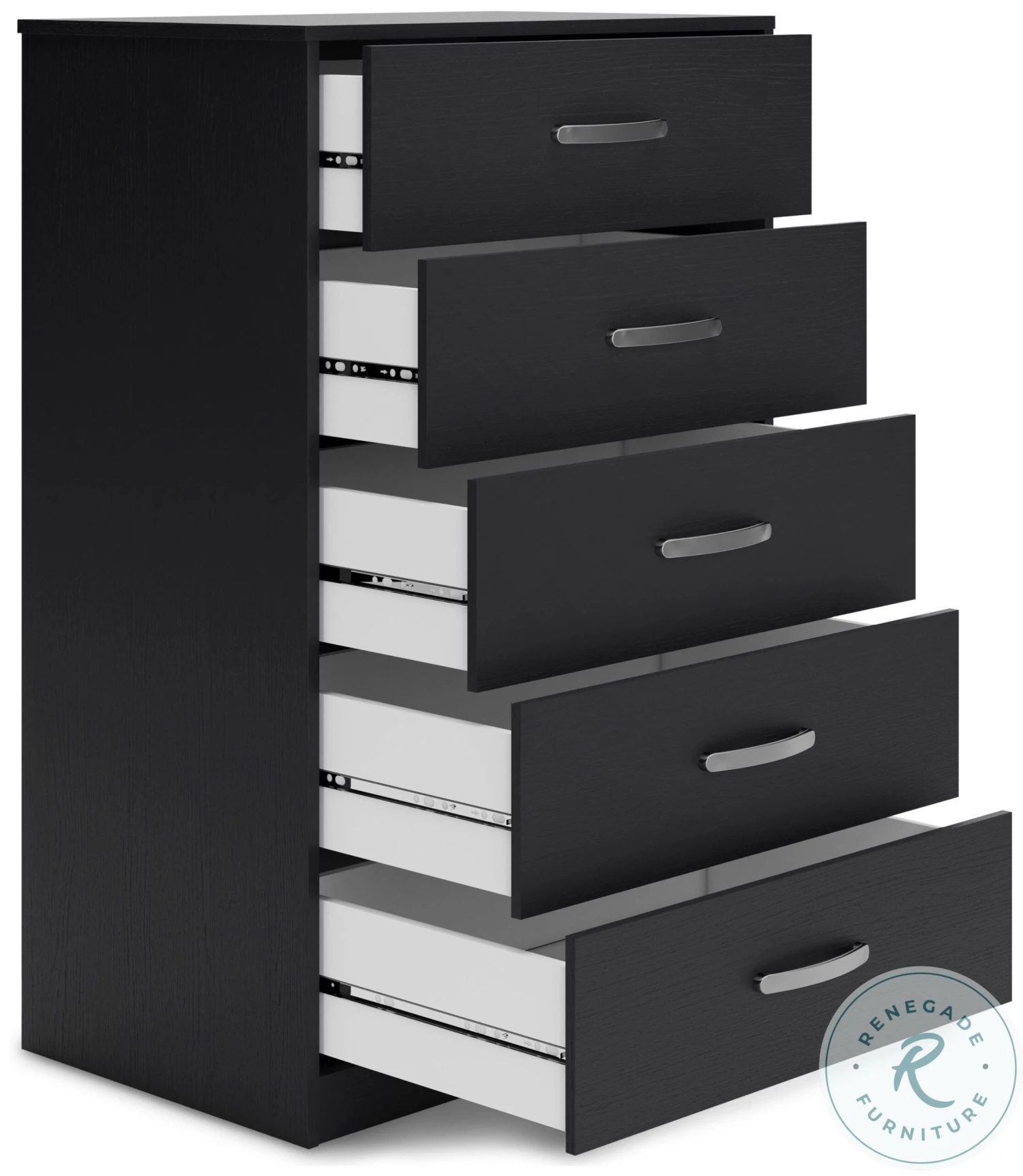- 5 smooth gliding drawers with vinyl wrapped sides and back