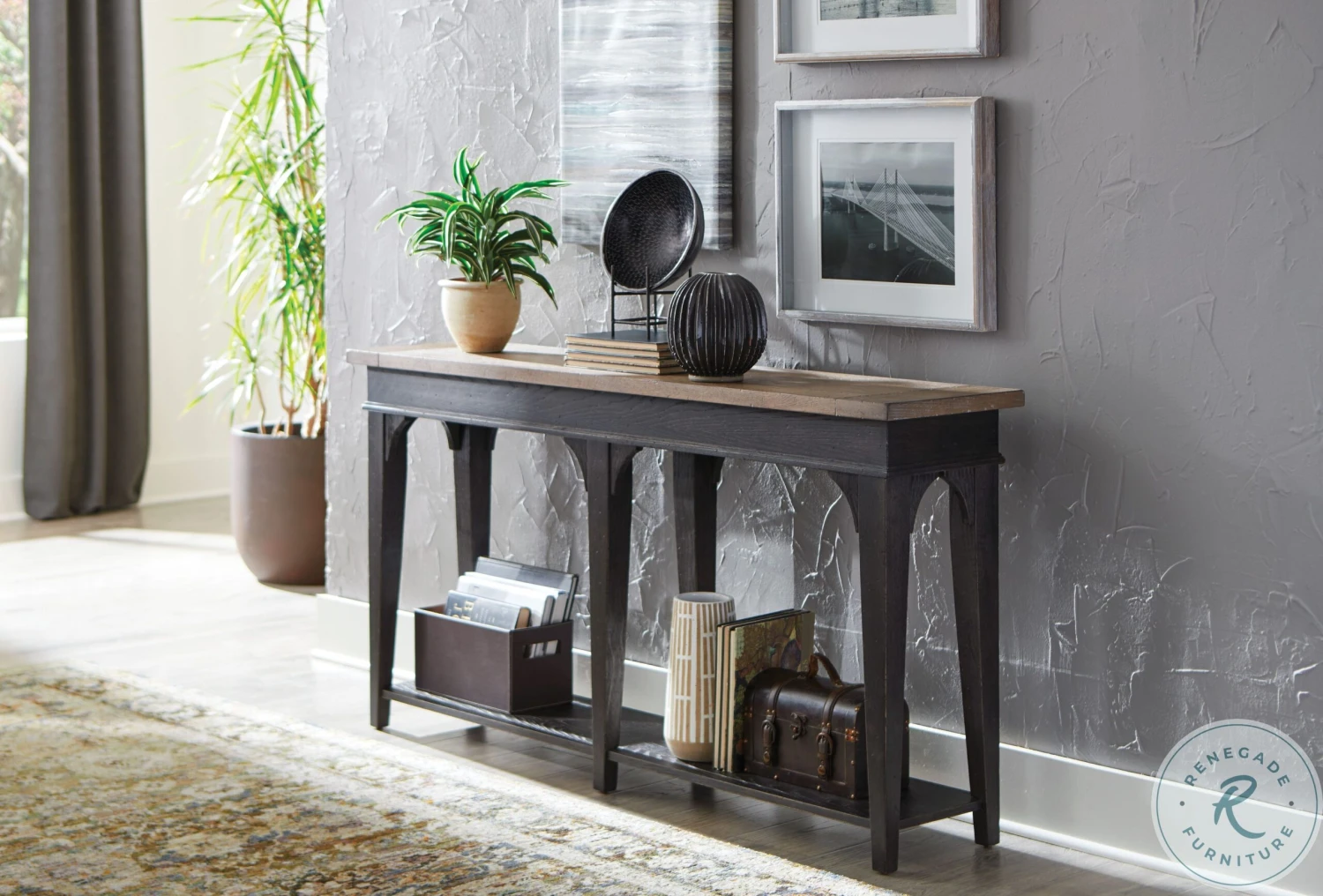 Hancock Vintage Natural And Rubbed Through Black Hall Console by Hammary