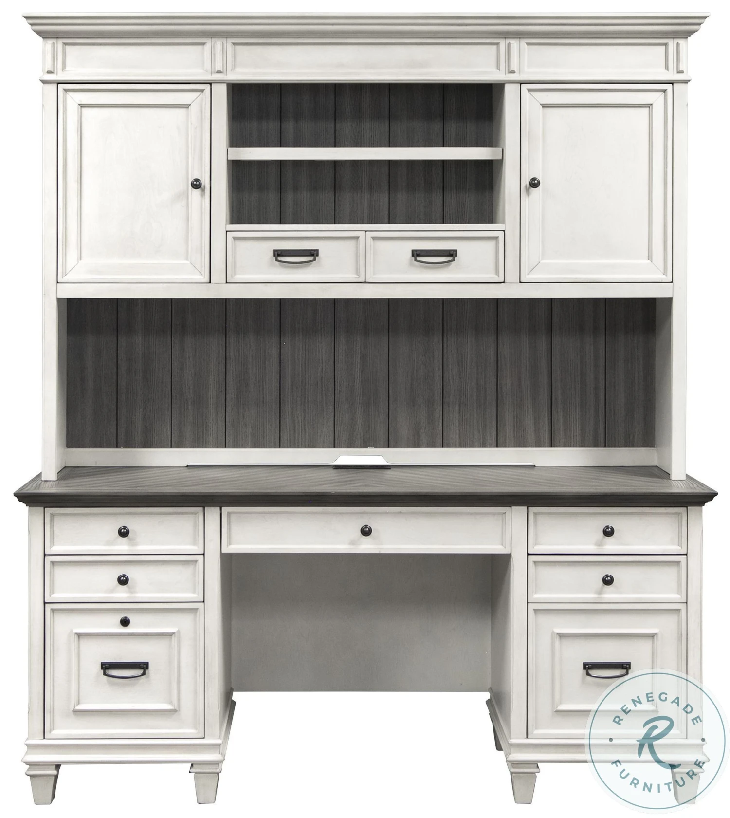 - Hutch features 1 adjustable storage shelf, 2 self closing wire doors, 2 utility drawers