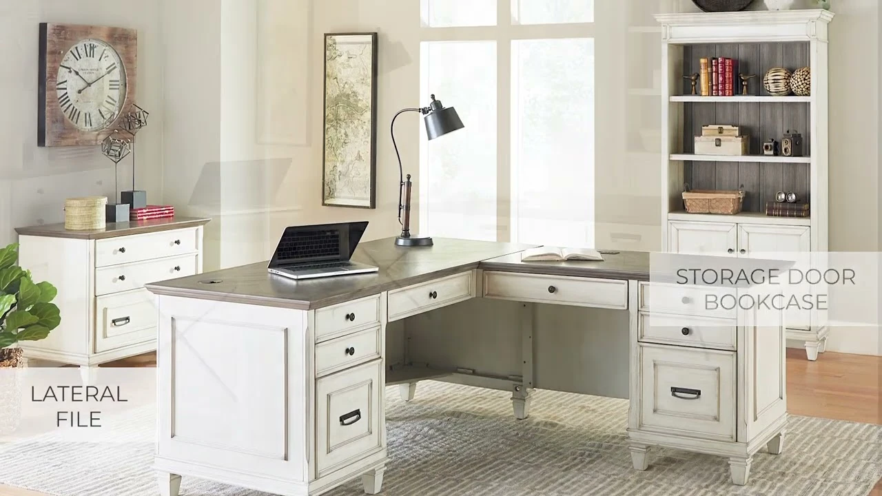 The Hartford collection combines bold lines with a weathered, vintage finish and classic style elements. Distressing allows the natural wood grain to show through with added detail for an aged appearance. Desk tops and back panels offer contrast, with beautifully patterned veneers, while the black metal hardware and accents complete the design aesthetic for a look that is right at home in either a classic or more relaxed, eclectic home. The Hartford collection is available in a warm, two-tone rubbed finish or vintage linen.