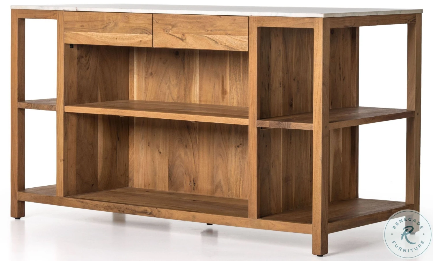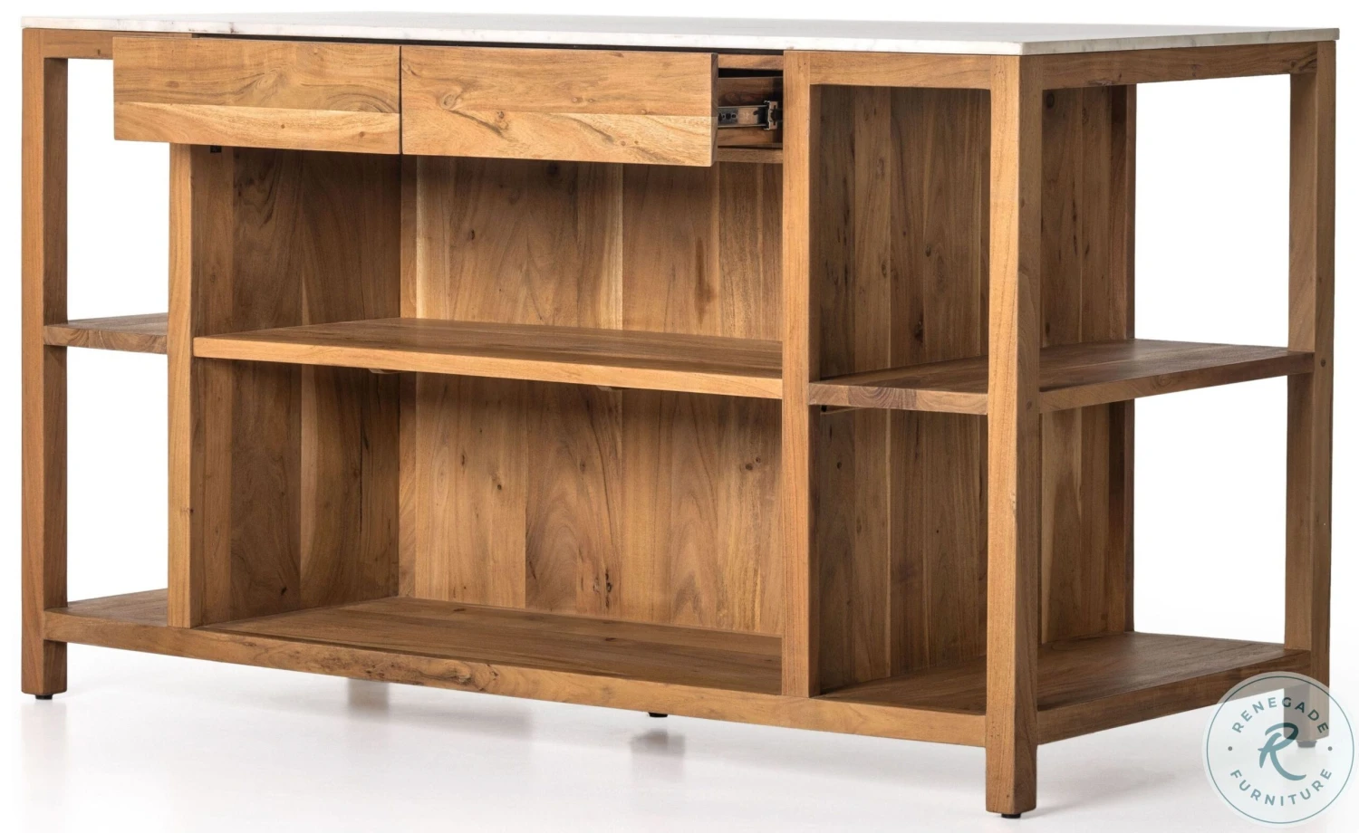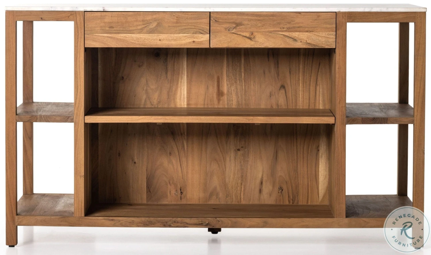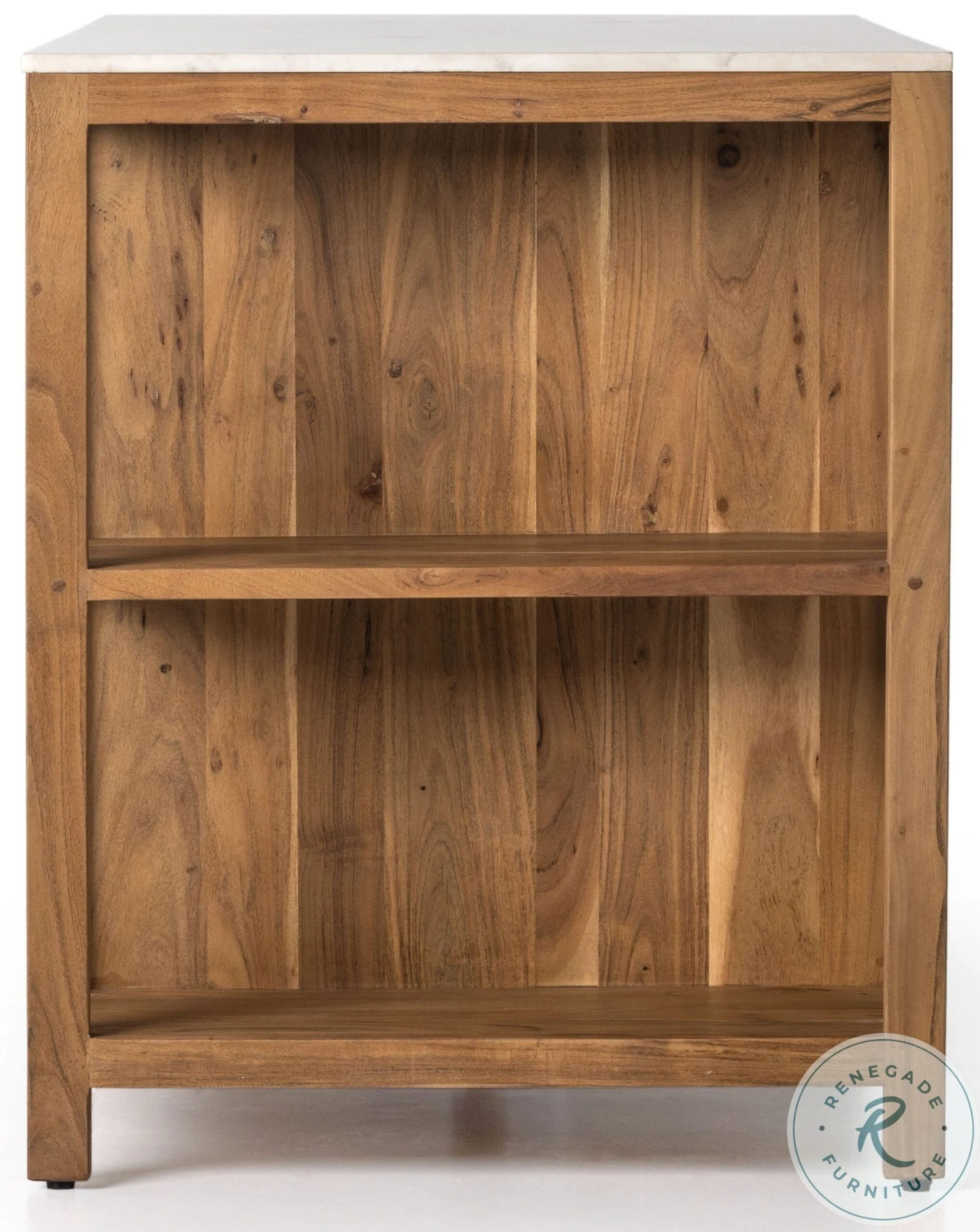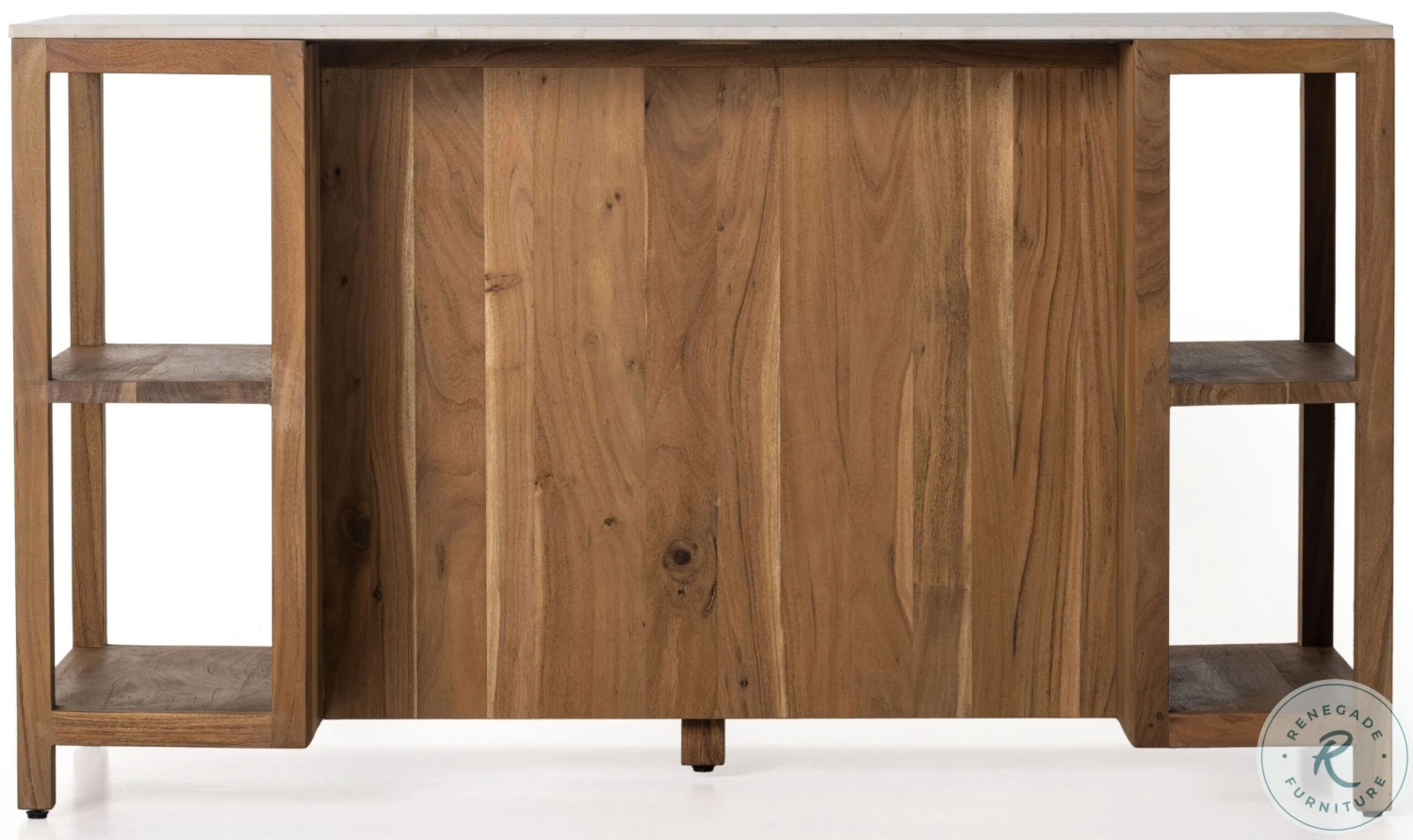 - Crafted from solid acacia thin acacia veneer and solid marble
