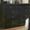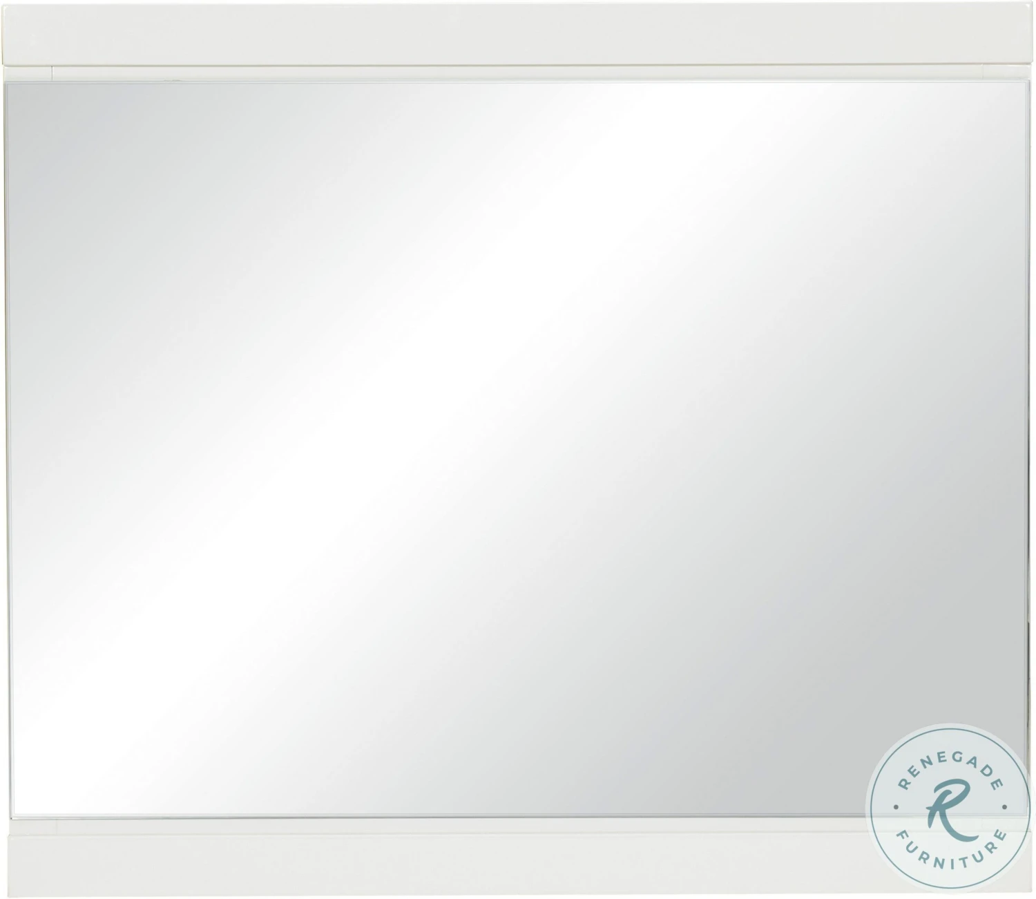 The visually stunning Kerren Collection is a modern study on line and light. LED enhances the front side of each case piece and top rail of the bed. Providing additional eye-catching drama is the white opalescent bi-cast vinyl headboard, shimmering in the glow of the LED light. The door dresser provides ample space for storage alongside the nightstand and chest.