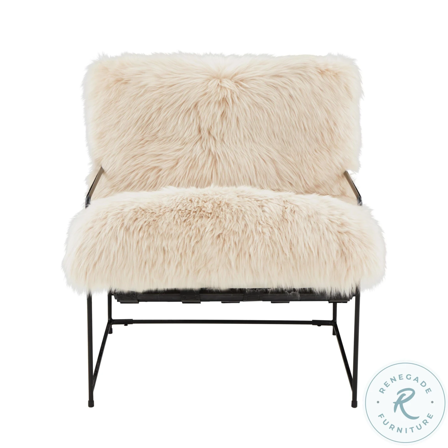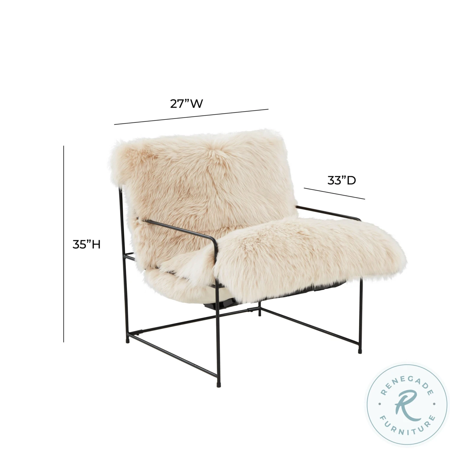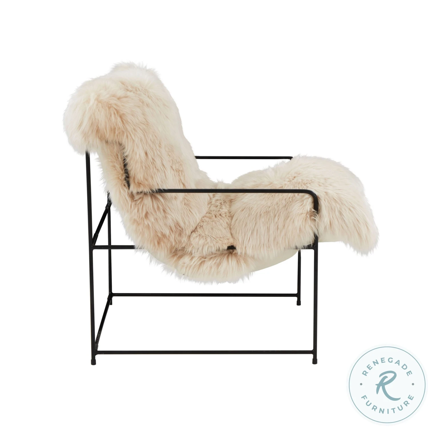 Cozy up with the Kimi Natural Genuine Sheepskin Chair! This transitional statement piece will blend with any aesthetic and add warmth to any space with its humanely sourced sheepskin and modern iron frame.