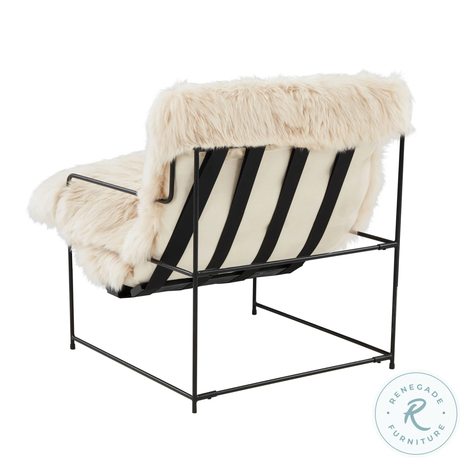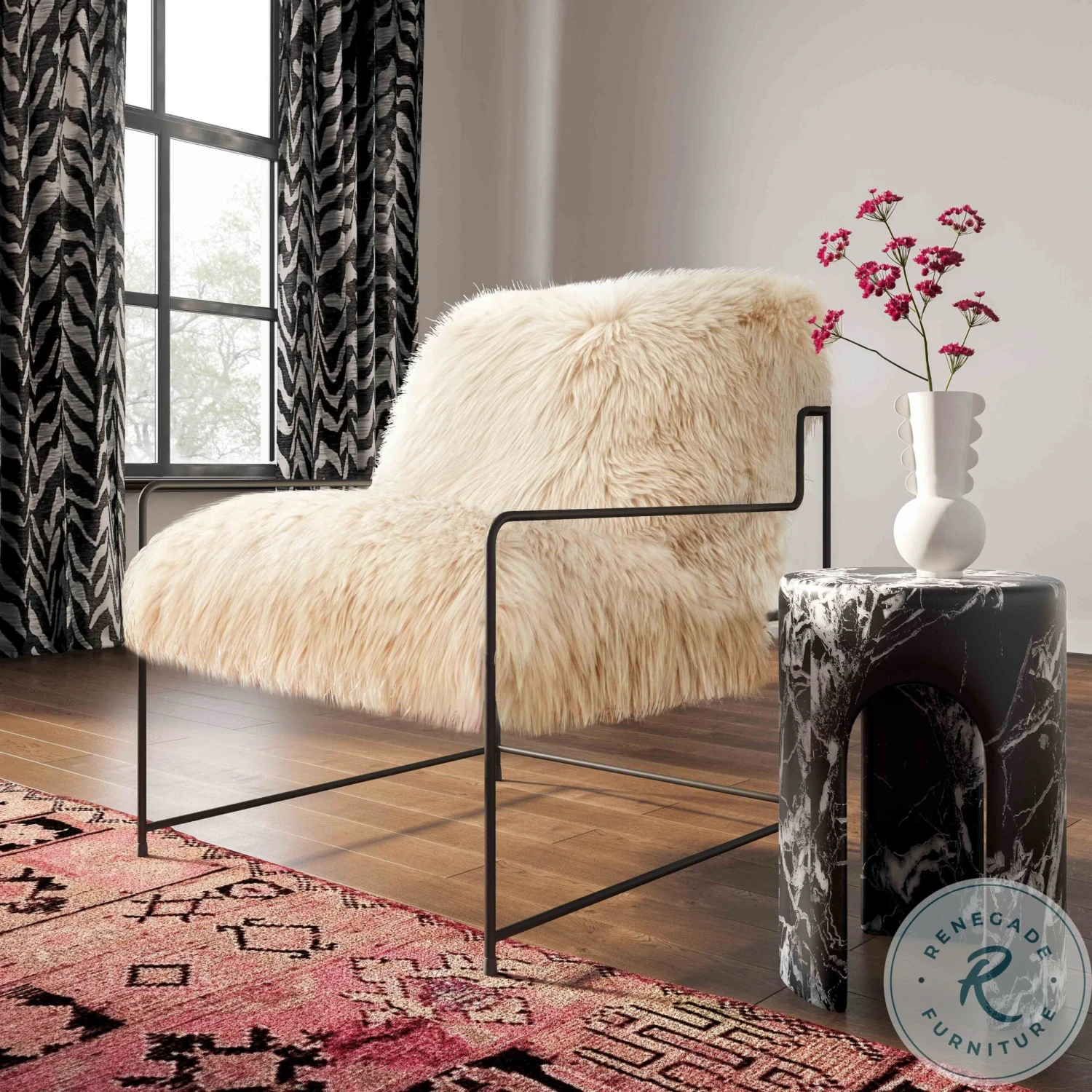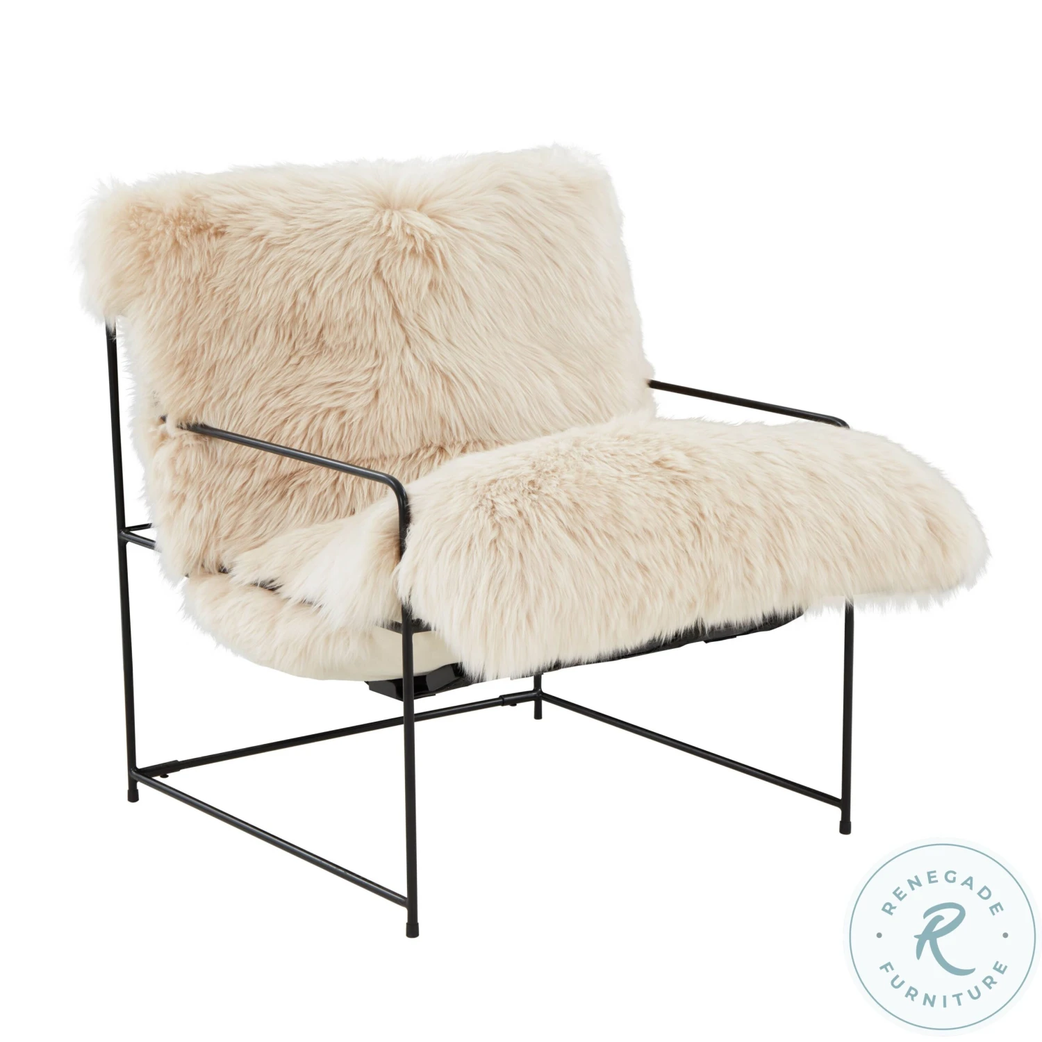 Cozy up with the Kimi Natural Genuine Sheepskin Chair! This transitional statement piece will blend with any aesthetic and add warmth to any space with its humanely sourced sheepskin and modern iron frame.