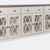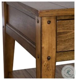 Casual country styling with planked top accents finished in a golden oak for universal appeal. 60” TV console feature top component and center component openings with wire management. Two solid doors with planked accents work great for concealed storage.
