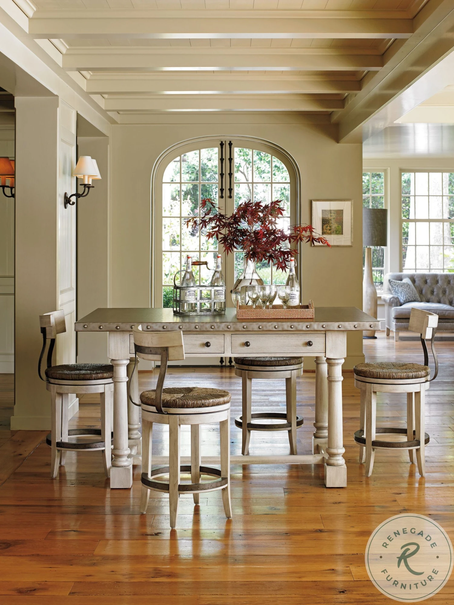 Today’s casual transitional styling blends lighter wood tones, natural textures and relaxed shades of ivory, taupe and gray, with designs that embody a feeling of laid-back sophistication. Oyster Bay offers a casual, comfortable and understated interpretation of luxe living. Designs feature an eclectic mix of traditional elements like button-tufting, breakfront profiles and turned legs with more transitional features like geometric metal bases, burnished stainless steel tops and natural materials.