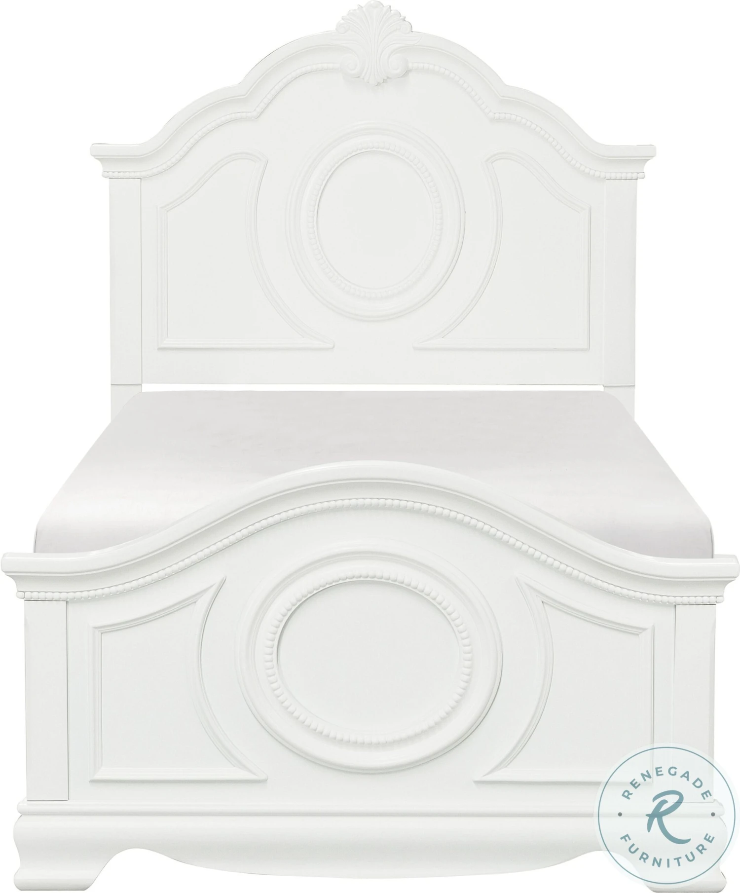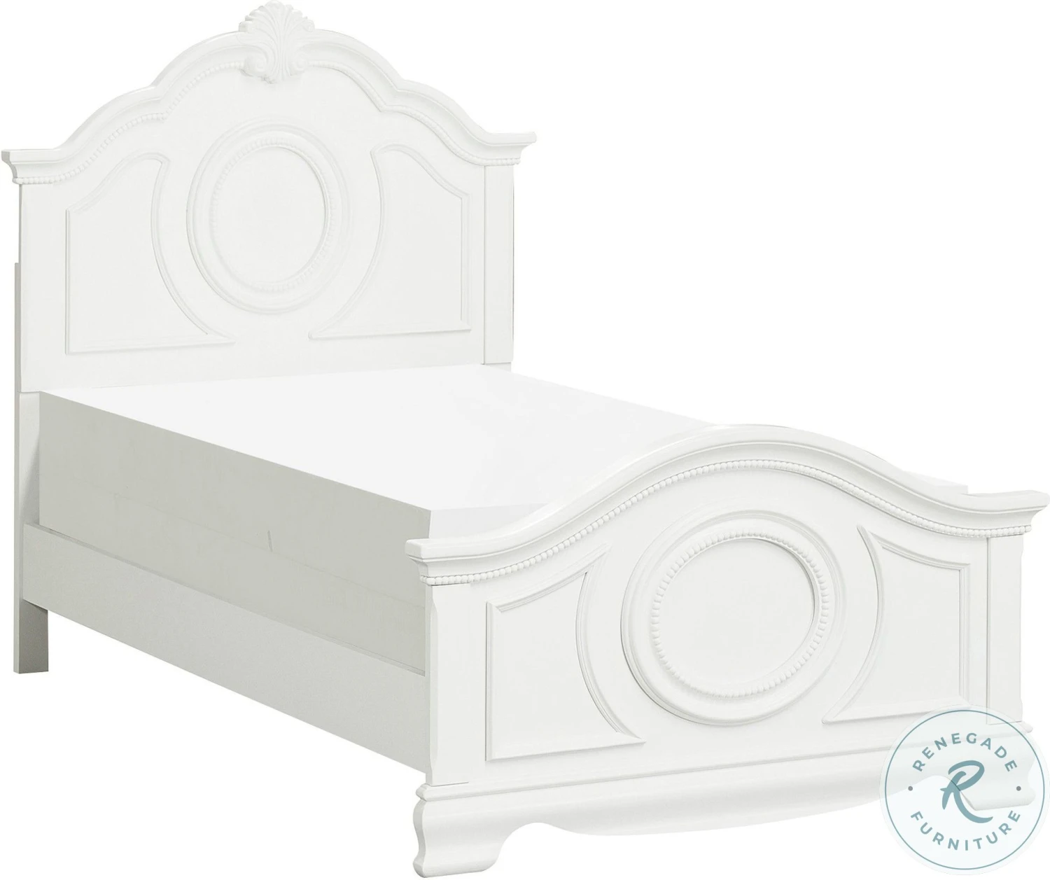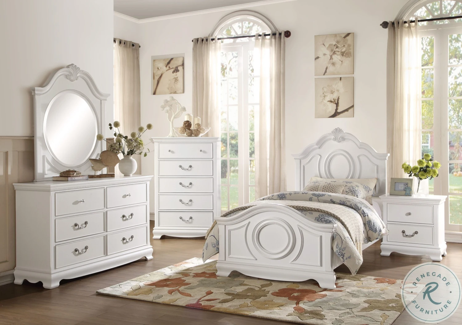 Classic traditional styling creates an elegant addition to your home in the Lucida Collection. Bead molding, shell motif, and a round mirror in traditional framing provide classic accent to the bedroom group. The twin and full bed options provide a flexible option to fit your space. The collection is offered in white and cherry finish.