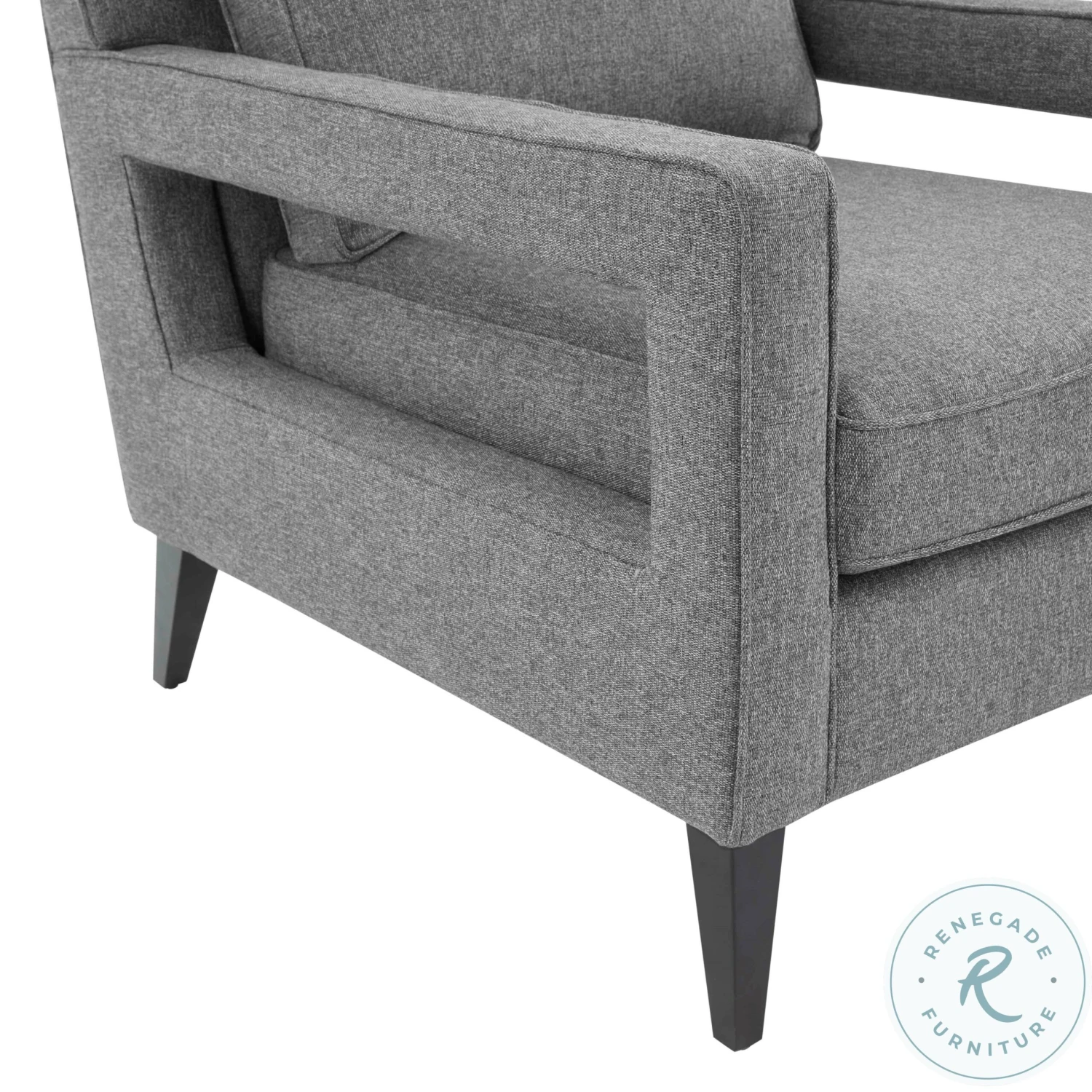 - Gray tweed upholstery
