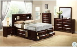 Madison Twin Panel Bed will add style and sophistication to any bedroom. This panel bed, offering a rich merlot finish and clean lines, is complimented by chamfered corners and luxurious black vinyl panels.