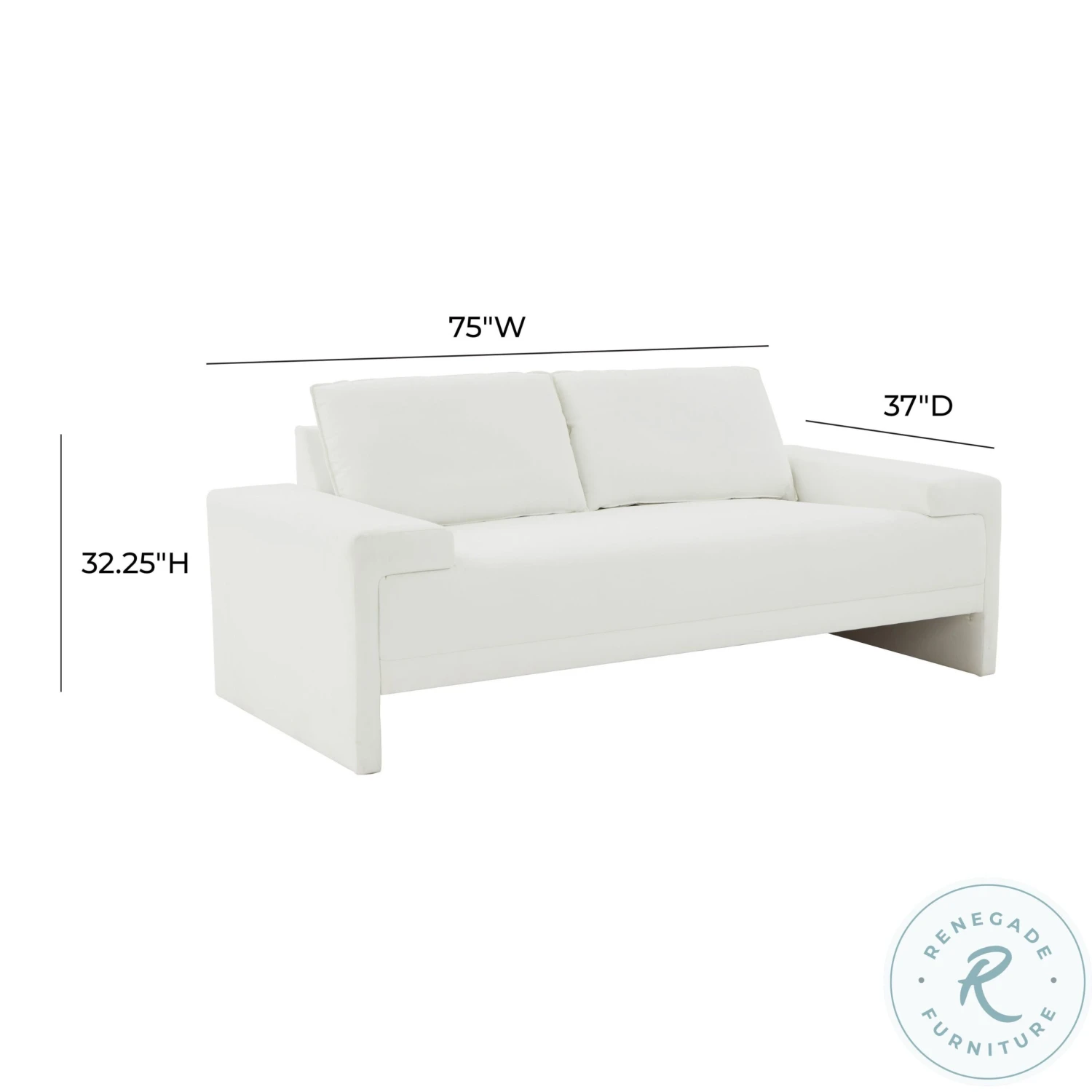 Designed for the modern home, the Maeve Collection is made for easy comfort. With a comfortable bench seat between low, wide arms makes the Maeve Cream Boucle Sofa great for both everyday lounging and entertaining guests. Upholstered in an inviting cream boucle fabric, this sofa is the perfect addition to your home.
