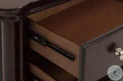 Refined elegance is exemplified in the design of the Marston Collection. A double pedestal base rises to support the clipped-corner rectangular tabletop. The 96-inch table is flanked by chairs that feature turned front legs and nailhead accent, along with a neutral tone fabric that covers the seats and backs. Featuring drawer and door storage, with oval bale pull and knob hardware, you can be assured of plentiful space in which to stow or display your tabletop accessories