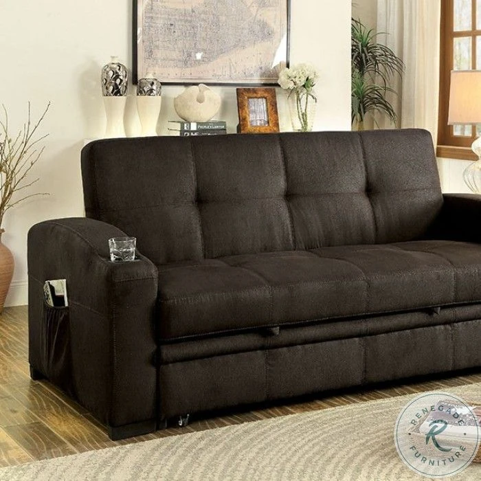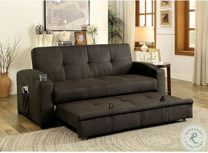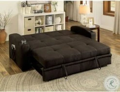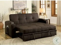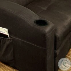 A staple for any man cave or entertainment room, this convertible futon sofa is a handy addition that is well worth the floor space! The sofa frame effortlessly unfolds to become a large bed, but can be transformed into a double-chaise with It’s pull-out trundle. Built-in cup holders can be found on each arm while side pockets keep reading materials within easy reach. The entire exterior is upholstered in a soft brown fabric that will pair well with any transitional home.
