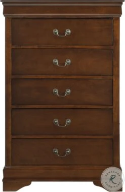 Traditional in design and modest in scale, the elegant Mayville Collection takes its design inspiration from classic Louis Phillippe styling. Featuring a burnished brown cherry finish and all of the traditional flare unique to the style – antiqued metal bale hardware and distinct framing- this collection is a perfect addition to your traditional bedroom.