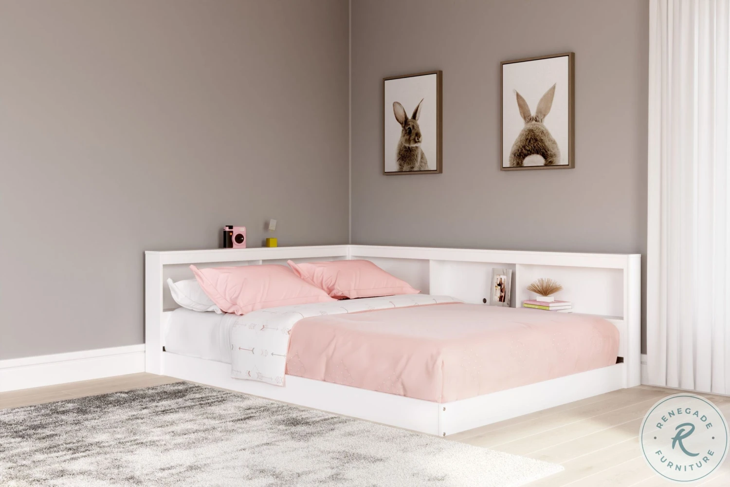 - Bookcase storage can be positioned on either right or left side