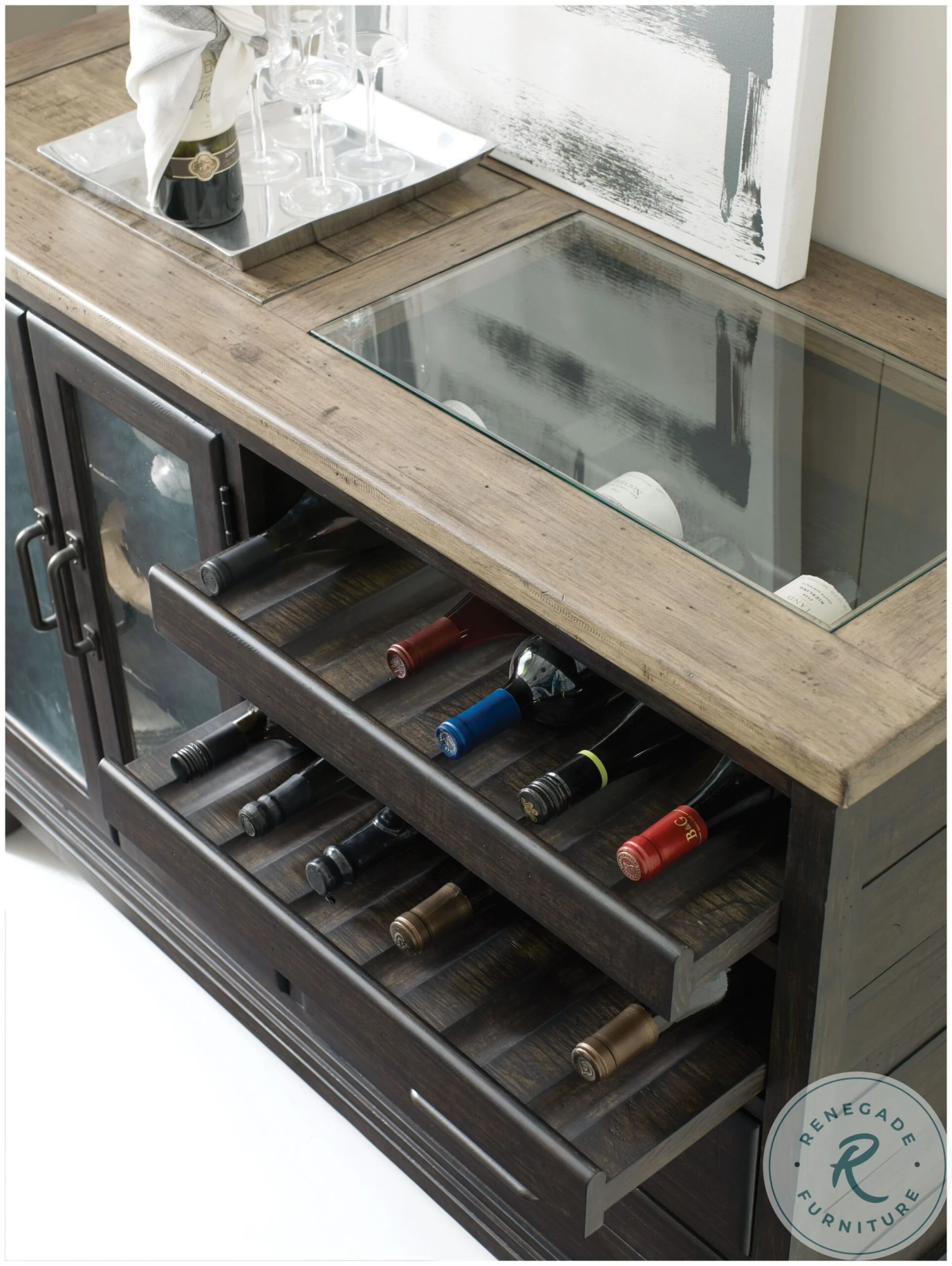 - Two wine storage pull-outs