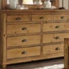 With a rich rustic beauty that is sure to transform the atmosphere of any dining area, the Ralene dining collection features a distressed and burnished dark brown finish beautifully complemented by the comfortable faux leather upholstered chair and bench seats.
