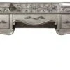 Elegant and sumptuous, the Rhianna bedroom collection by Pulaski Furniture envelops you in total luxury. The aged silver patina finish enhances sinuously curved shapes and French influenced decorative motifs. Drawers feature French & English dovetail with ball bearing full extension guides. All drawers also include a dust bottom. Come home and enjoy your well-appointed private sanctuary.