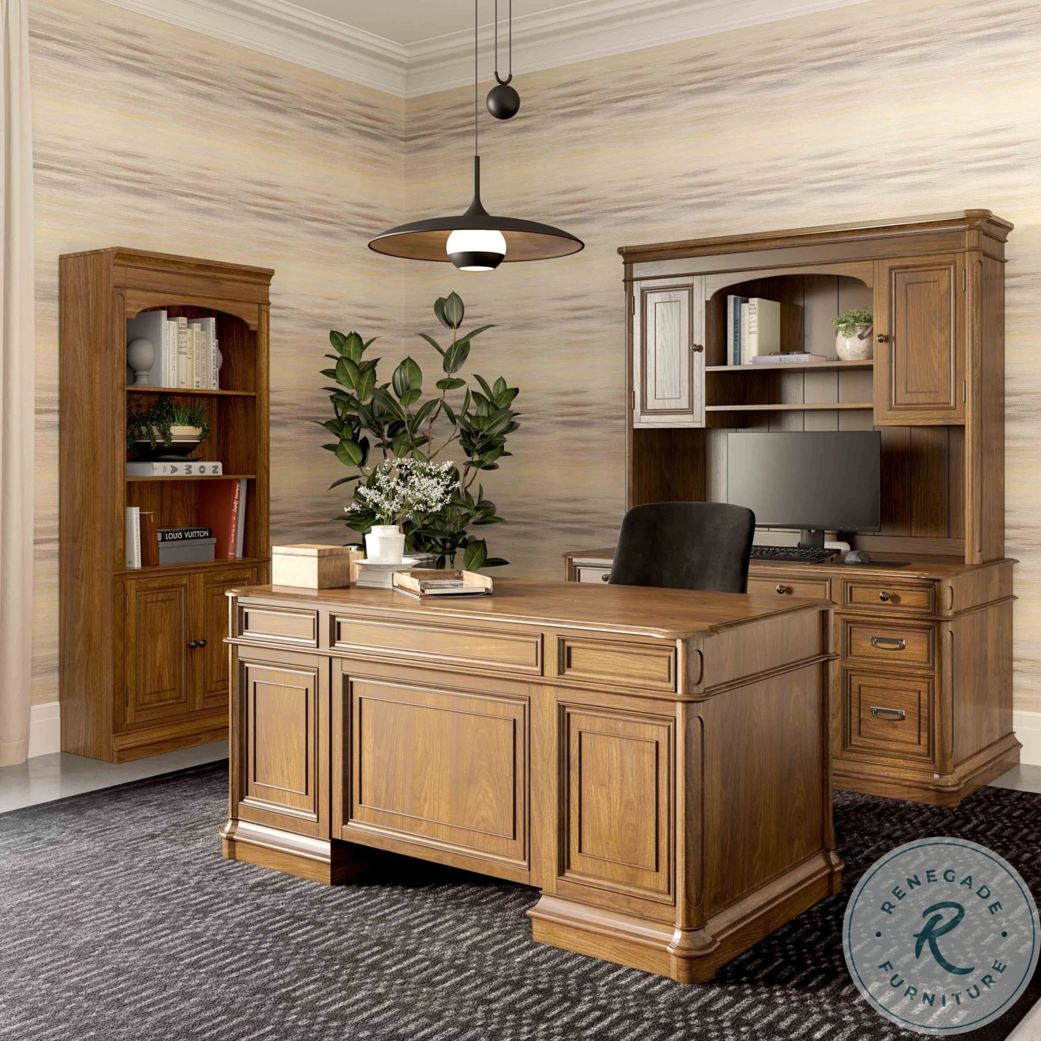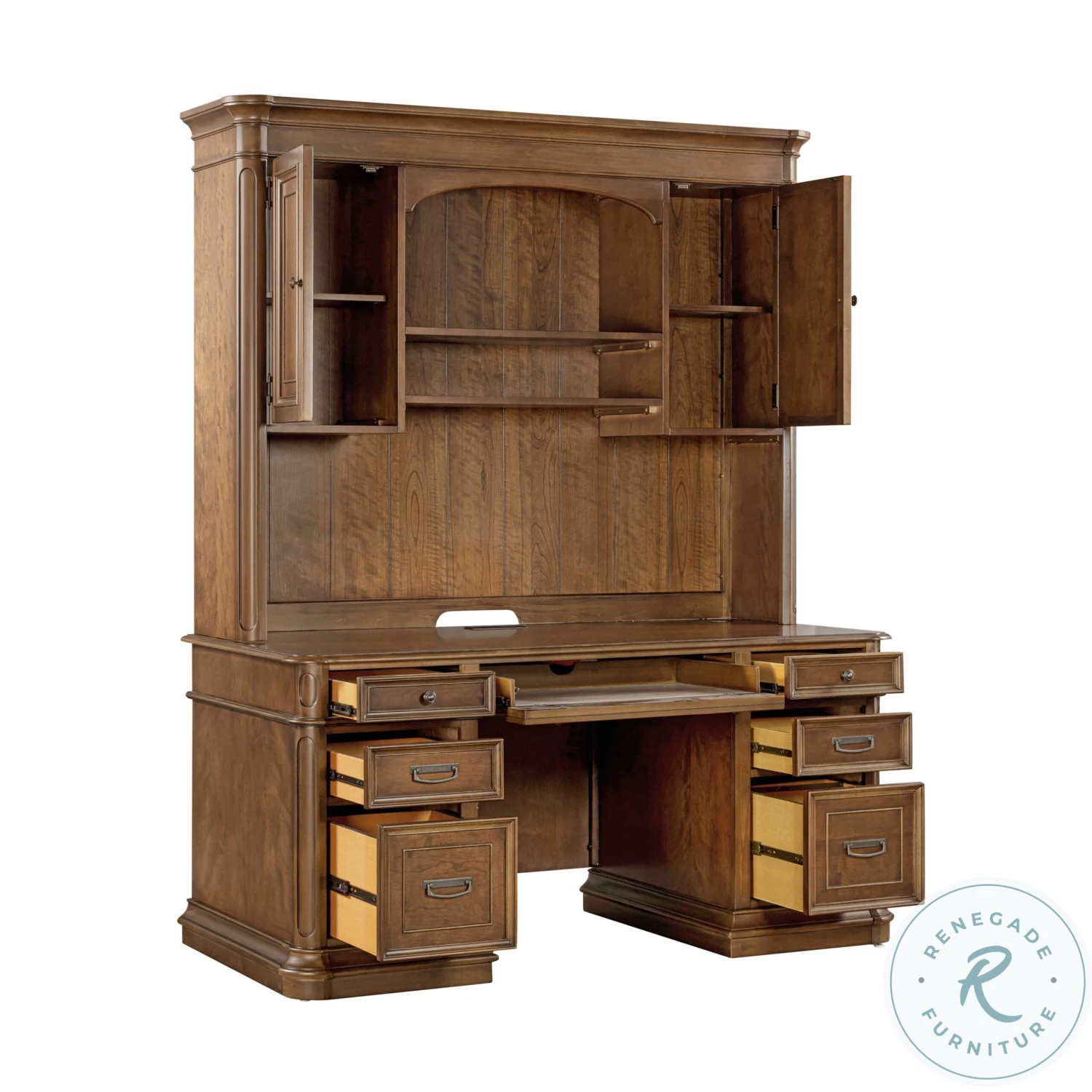 Classic and timeless with modern conveniences in mind, the Roanoke Office Collection is the perfect addition to any workspace. Crafted from birch veneers and MDF, this stylish collection includes an array of features including a drop-front center drawer for your laptop or keyboard, file drawers, and plenty of concealed storage space to hide odds and ends. Whether you use it once a month to pay bills or for back-to-back meetings every day, the Roanoke Office Collection will actually make you want to sit down and complete your to-do list.