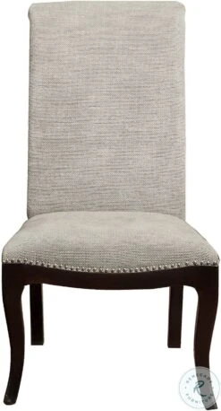 - Chair features beige finish Fabric Content 100% Polyester fabric upholstery nailhead trim and Maximum Weight Capacity 250lbs.