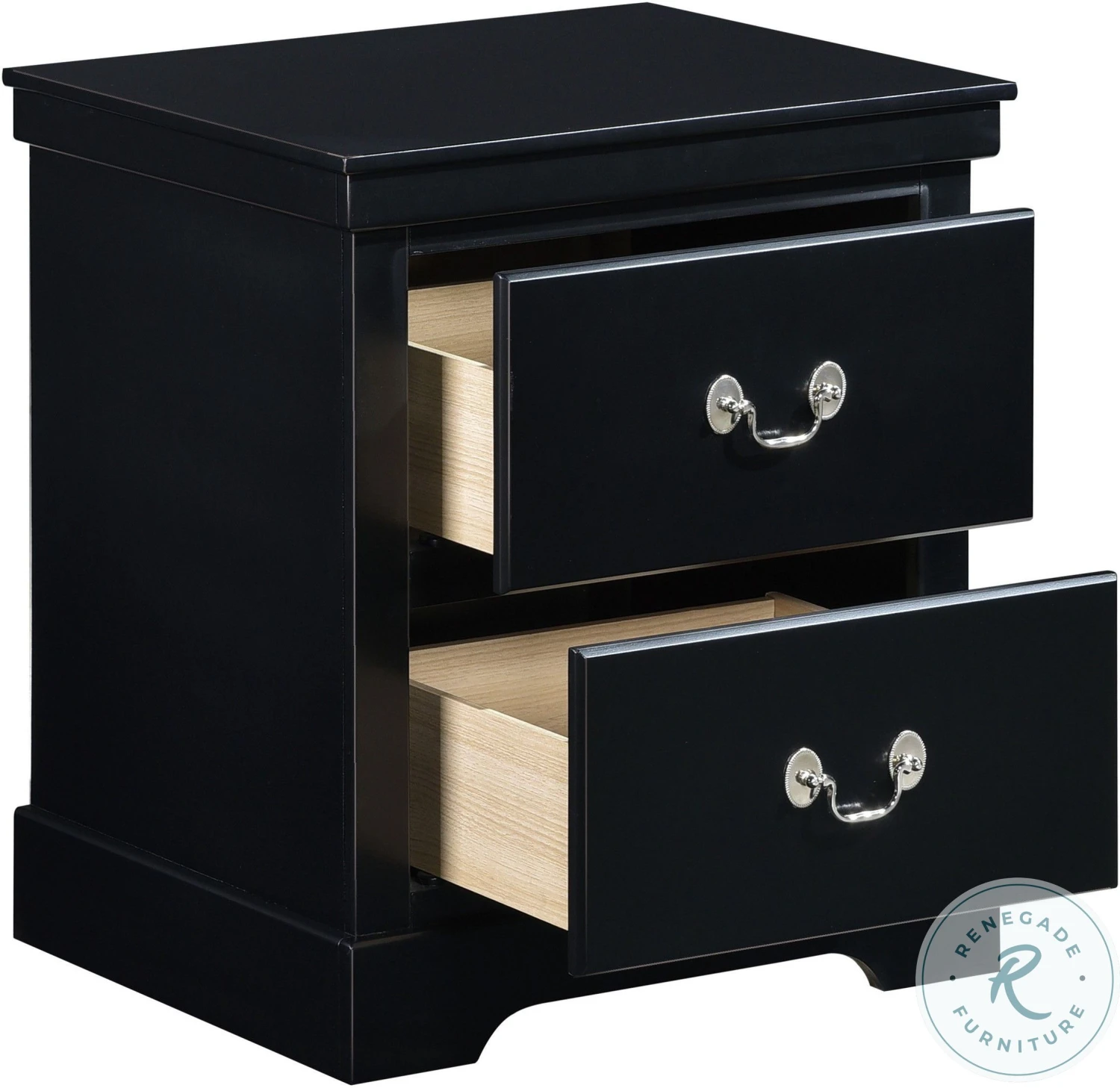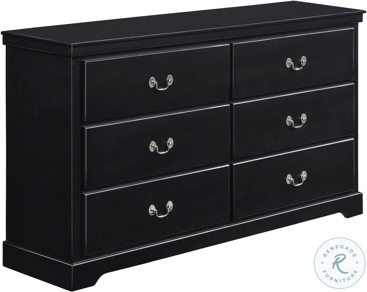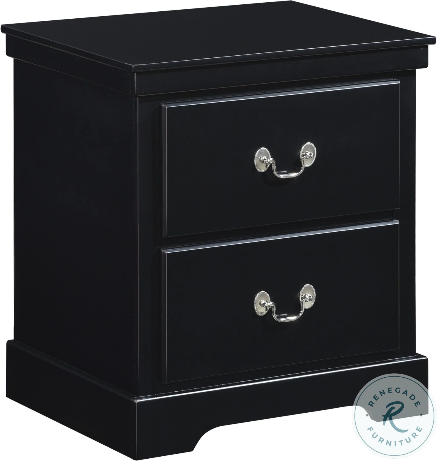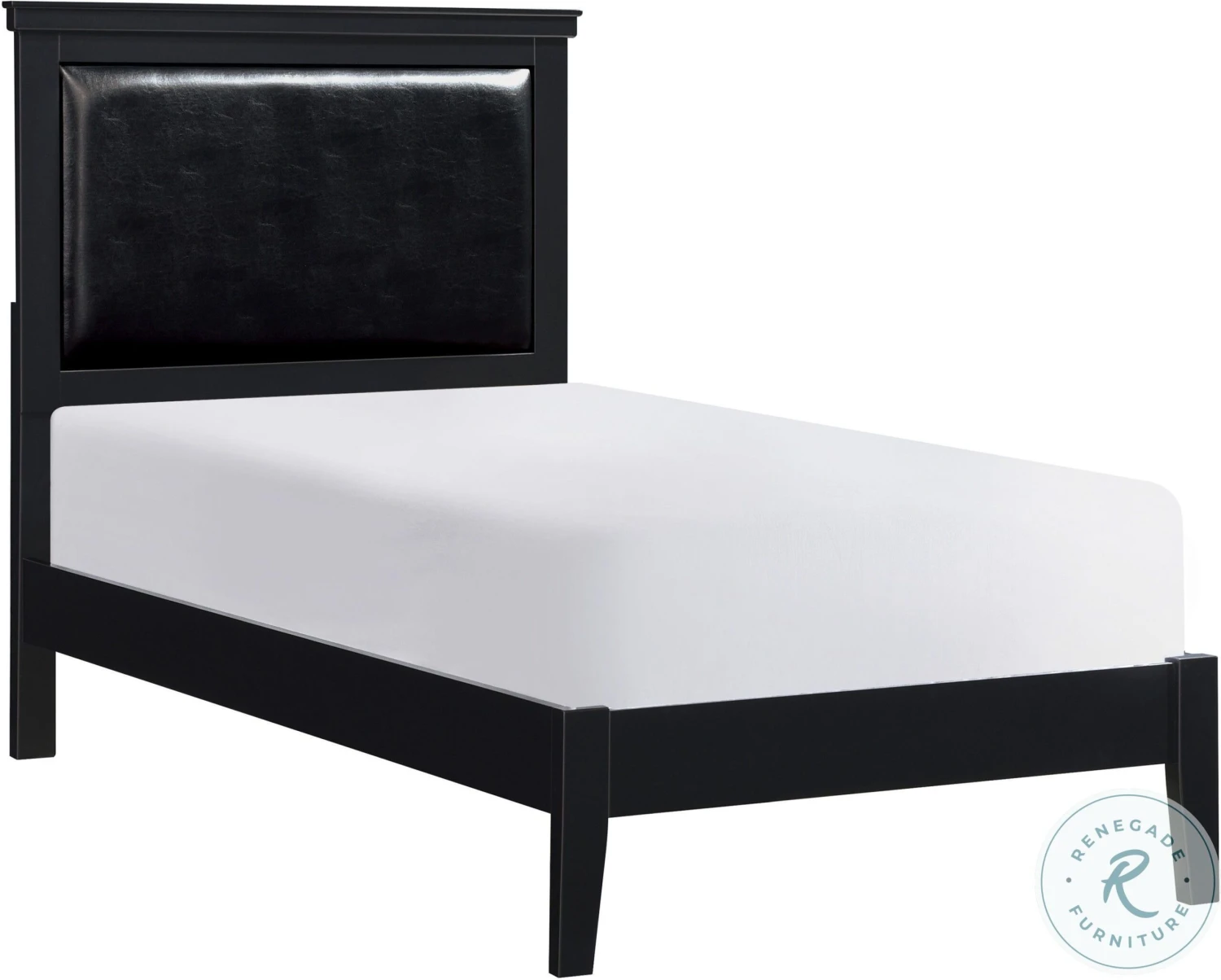 Merging traditional and transitional design creates the look of the Seabright Collection, providing a unique platform from which to style your bedroom. The black painted finish allows for exceptional versatility of placement and decorative inspiration. The bed features framed, color coordinated, dual faux leather padded headboard inserts and an ultra low-profile footboard. The traditional styling of the high polish chrome bale and pull hardware lends to the classic profile.