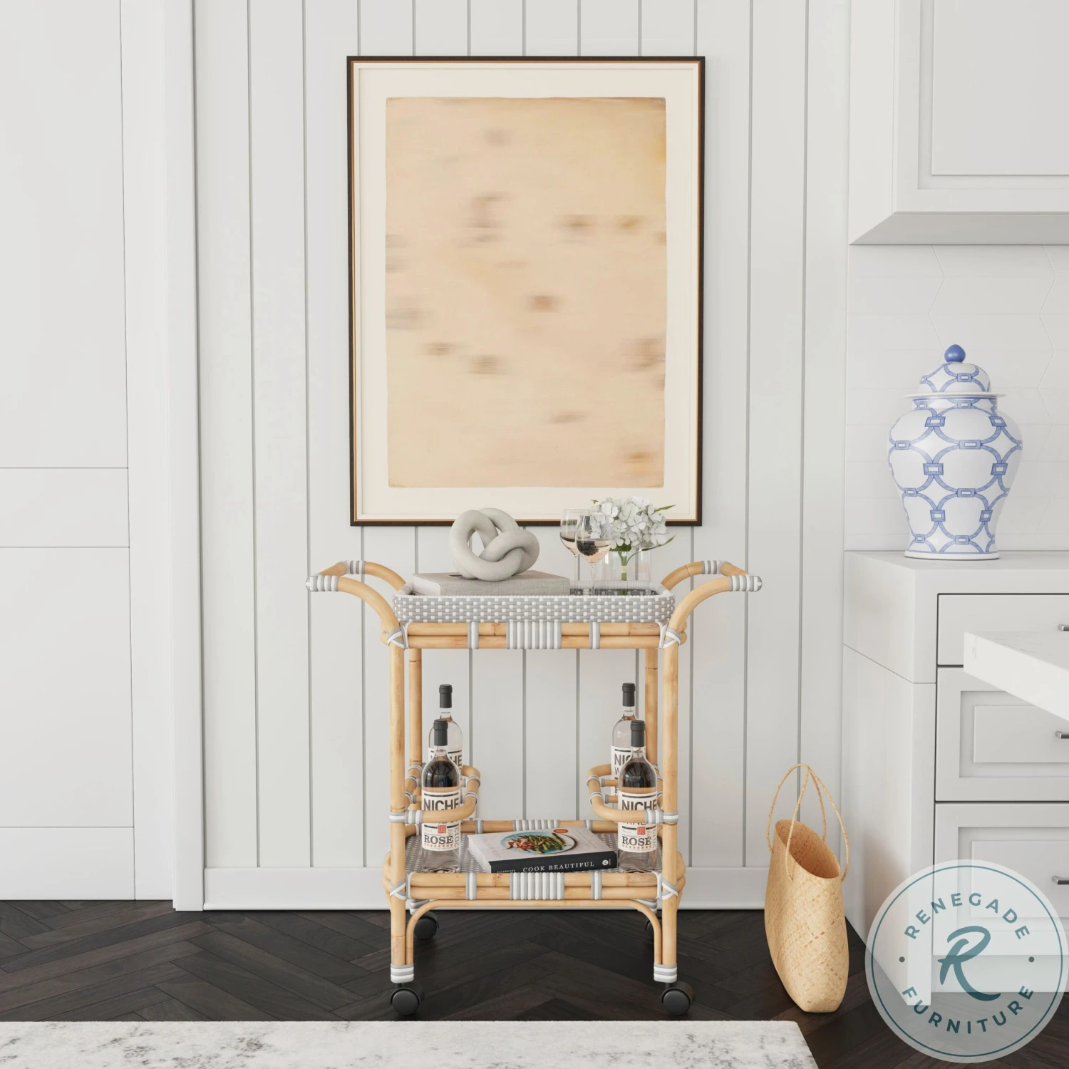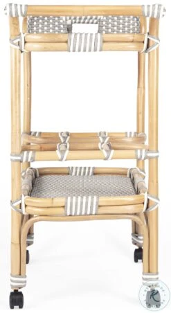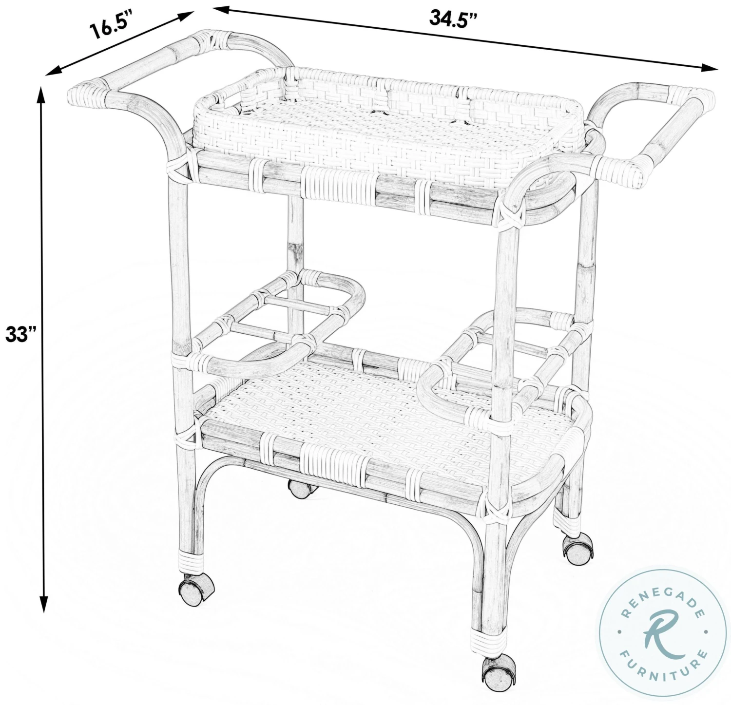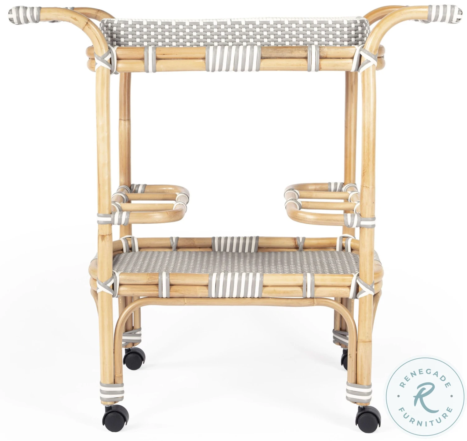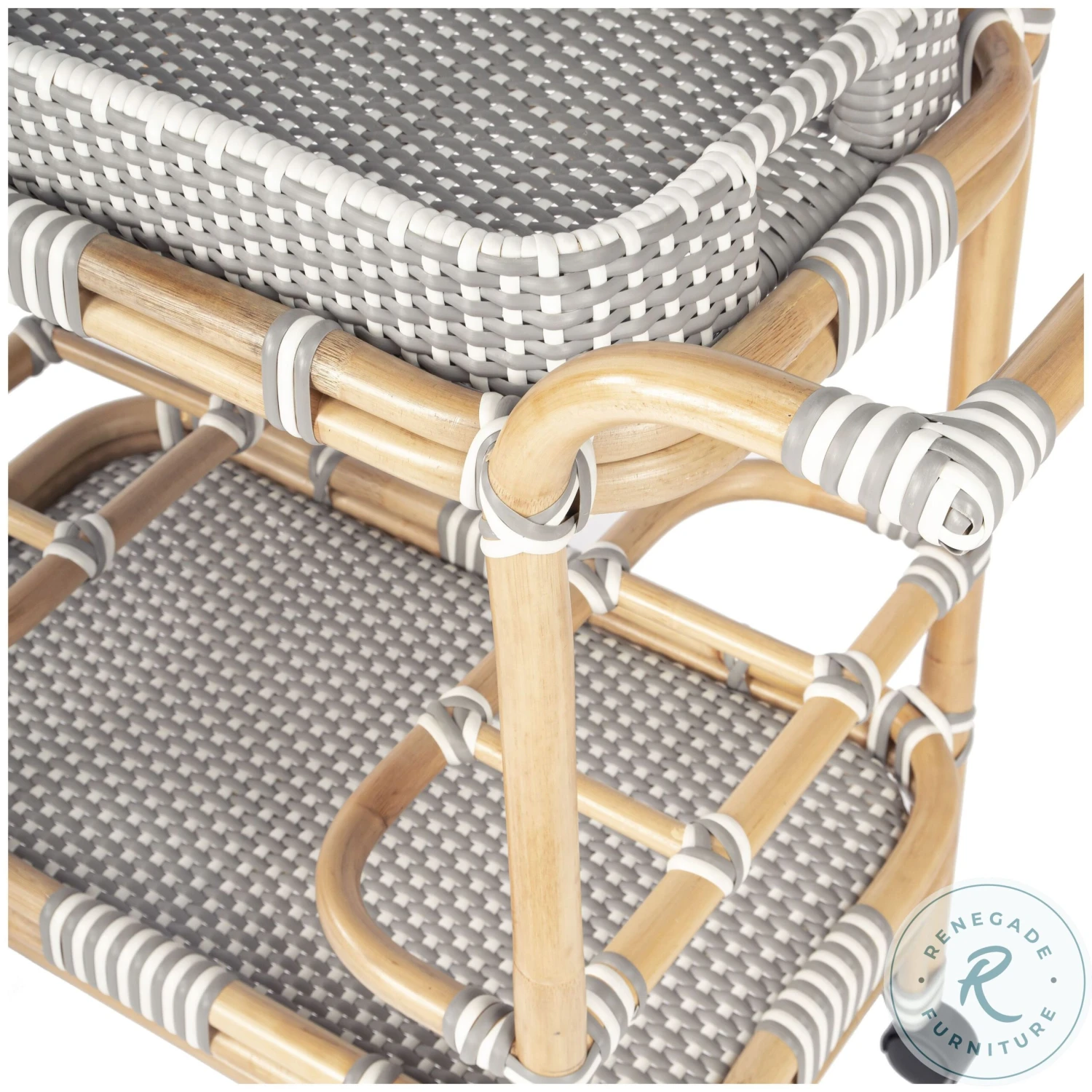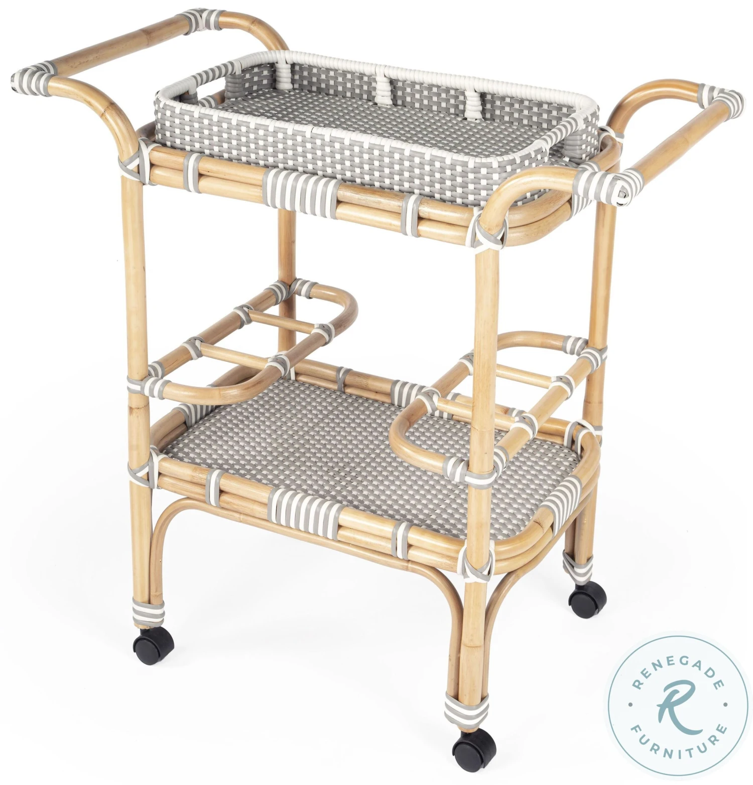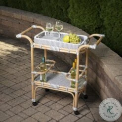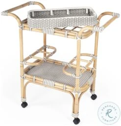 Function, form and fun all come together on this beautiful PU Rattan weave serving cart. The simplistic design of this servig cart is enhanced by a POP of contemporary design. The functional design with its intricate patterned weave and patterned removable tray offer all attentions to function and details. Reminiscent of the outdoor cafes on the streets of Paris, while sipping an aperitif and served with style. The fresh new look of Selena collection serving cart will bring new life to your entertaining style.