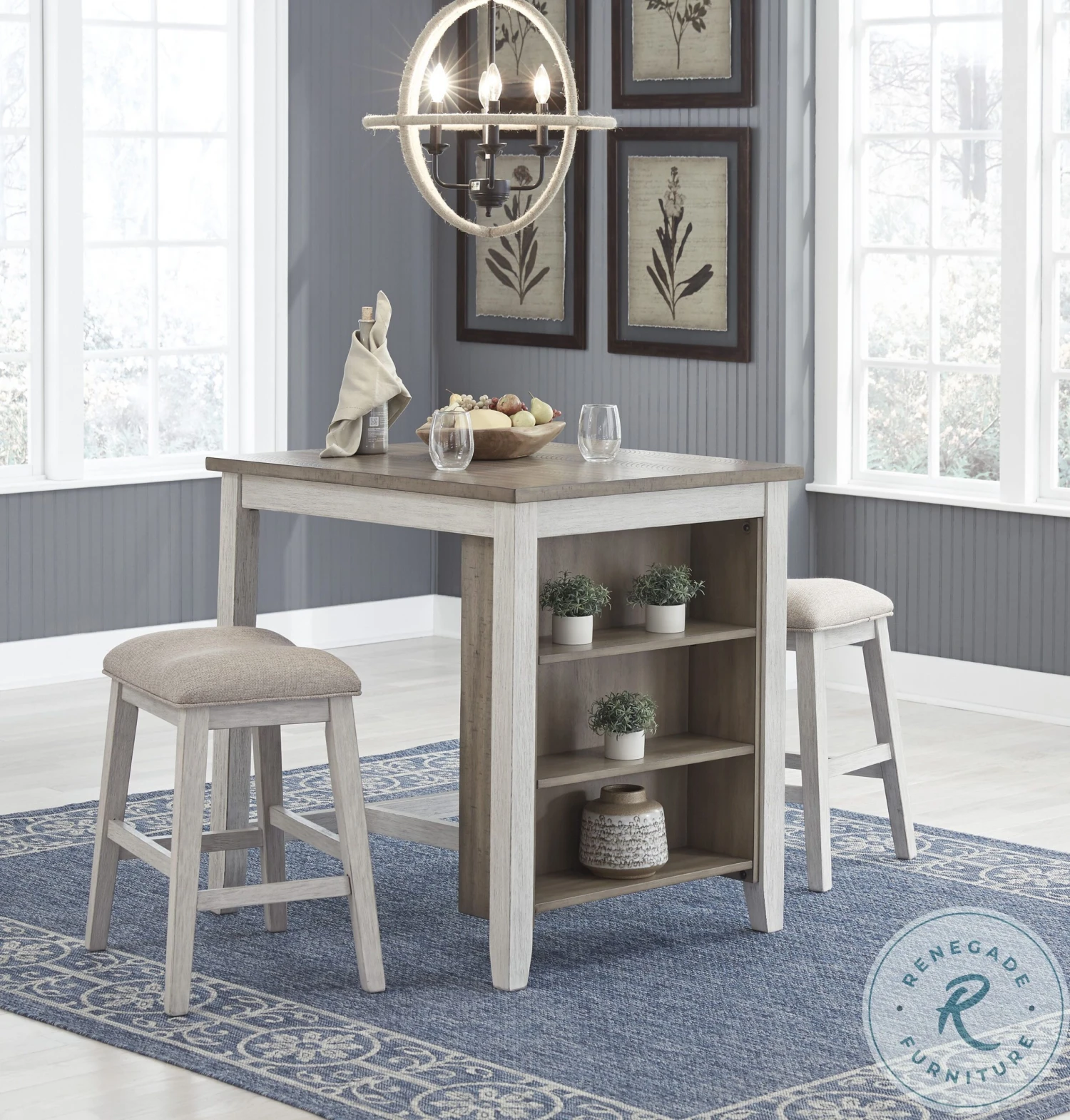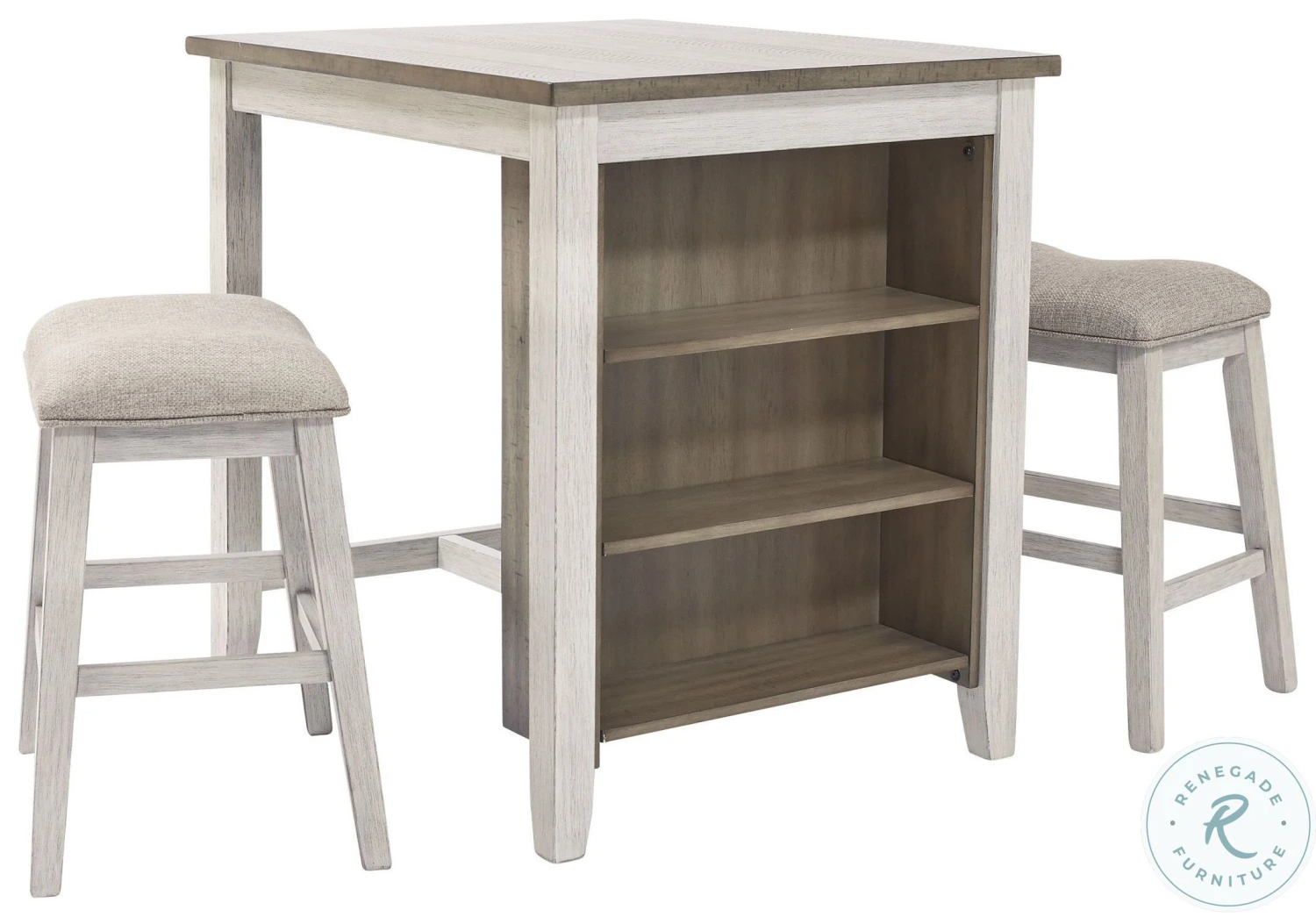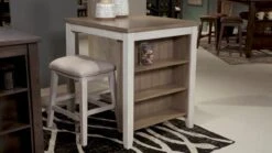 This Skempton Collection with storage invites you to raise the bar on small space living. An inspired choice for coastal chic or modern farmhouse settings, this clean-lined, simply striking Skempton Collection doubles the charm with a brown tone top with plank effect, paired with a grayish white base with rub through effect for timeworn appeal.