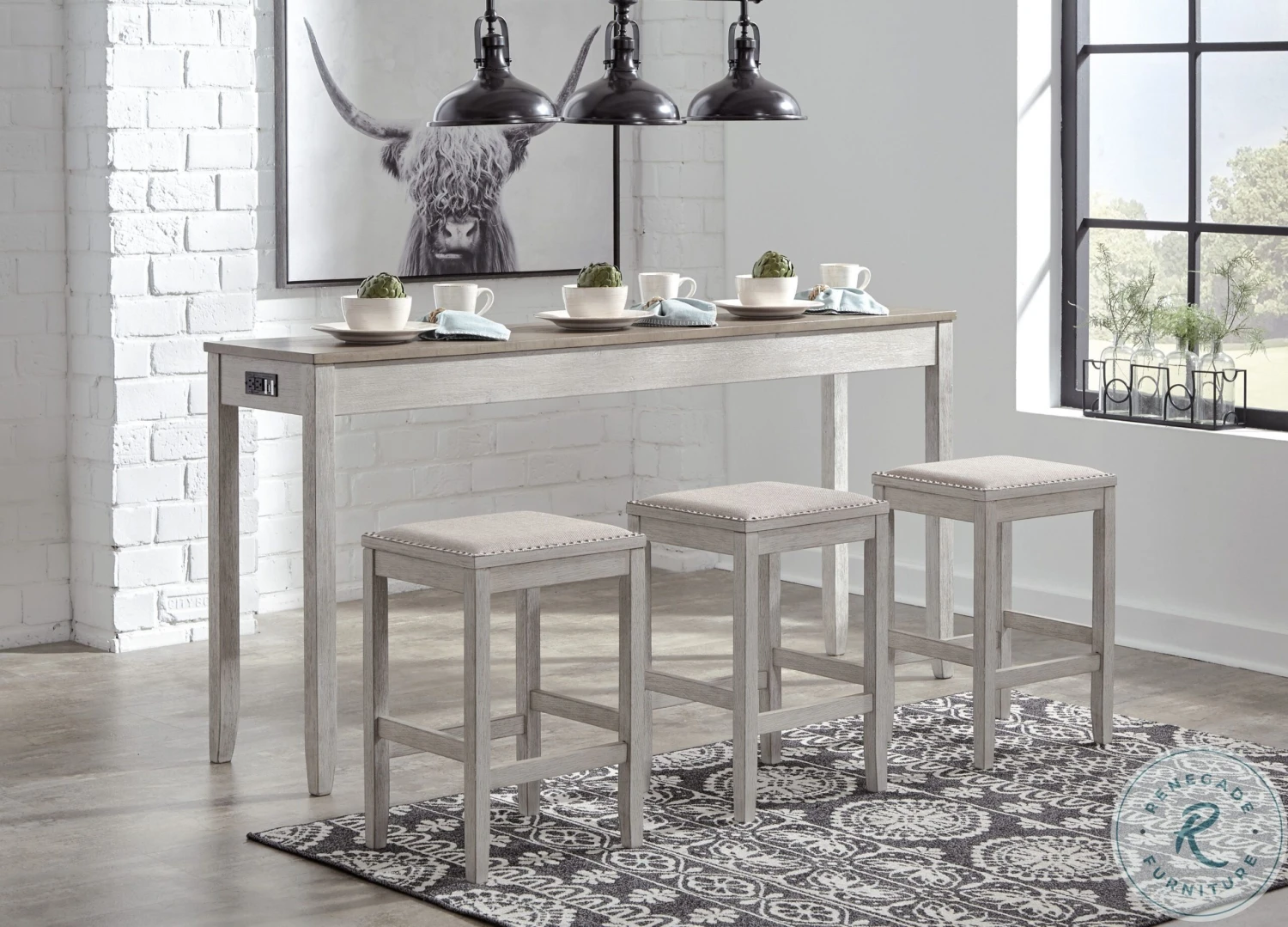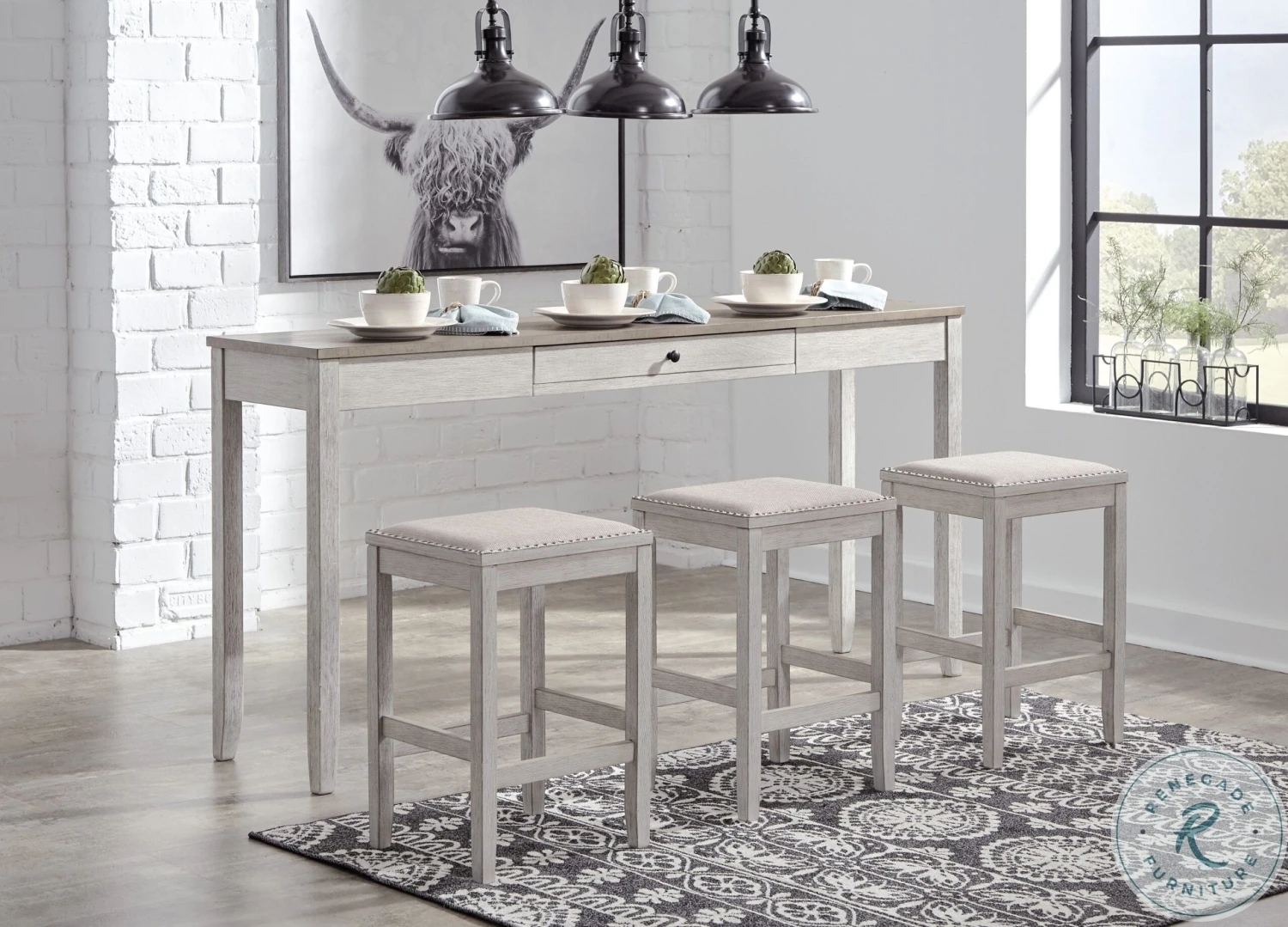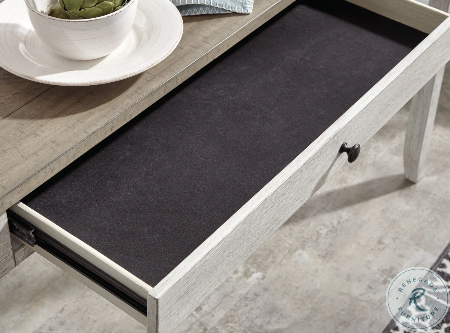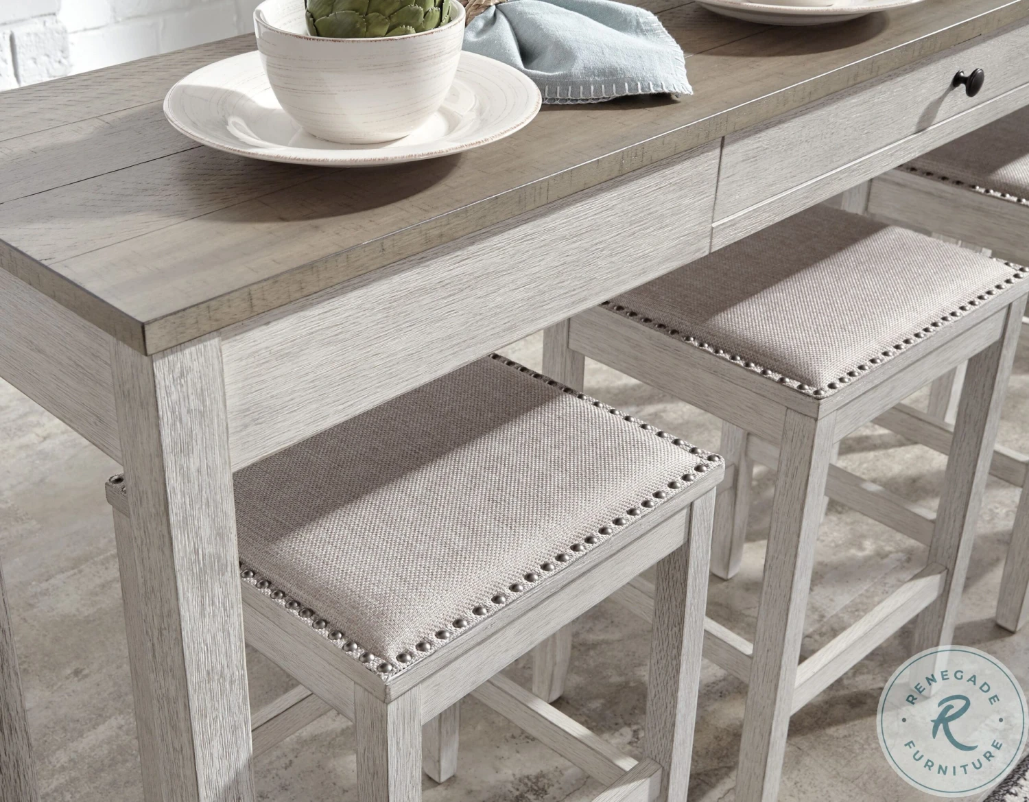 This Skempton Collection with storage invites you to raise the bar on small space living. An inspired choice for coastal chic or modern farmhouse settings, this clean-lined, simply striking Skempton Collection doubles the charm with a brown tone top with plank effect, paired with a grayish white base with rub through effect for timeworn appeal.