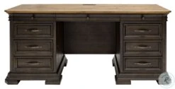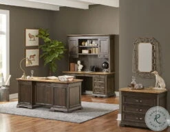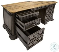 The Sonoma collection provides elements to create a truly inspirational office environment. Hand planked wood veneers in a rich, dark roast finish the color of freshly brewed coffee, show highlights of natural wood that has aged and is mildly distressed. Distressing includes rasping, chopping and worm holes, solid wood plank tops that accent the dark finish and emphasize the wood’s natural beauty for two-tone authenticity. Antique bronze hardware adds a shimmering touch.