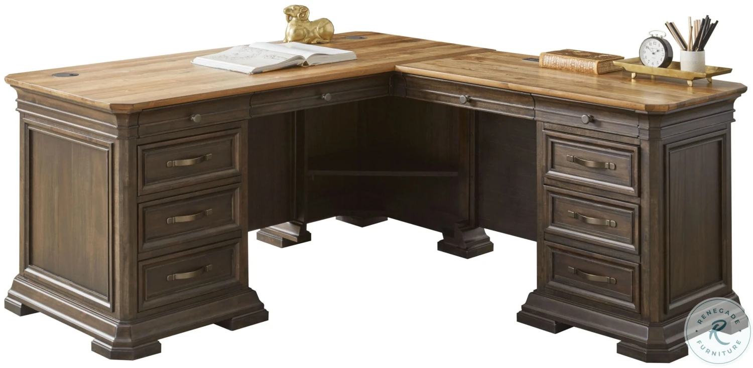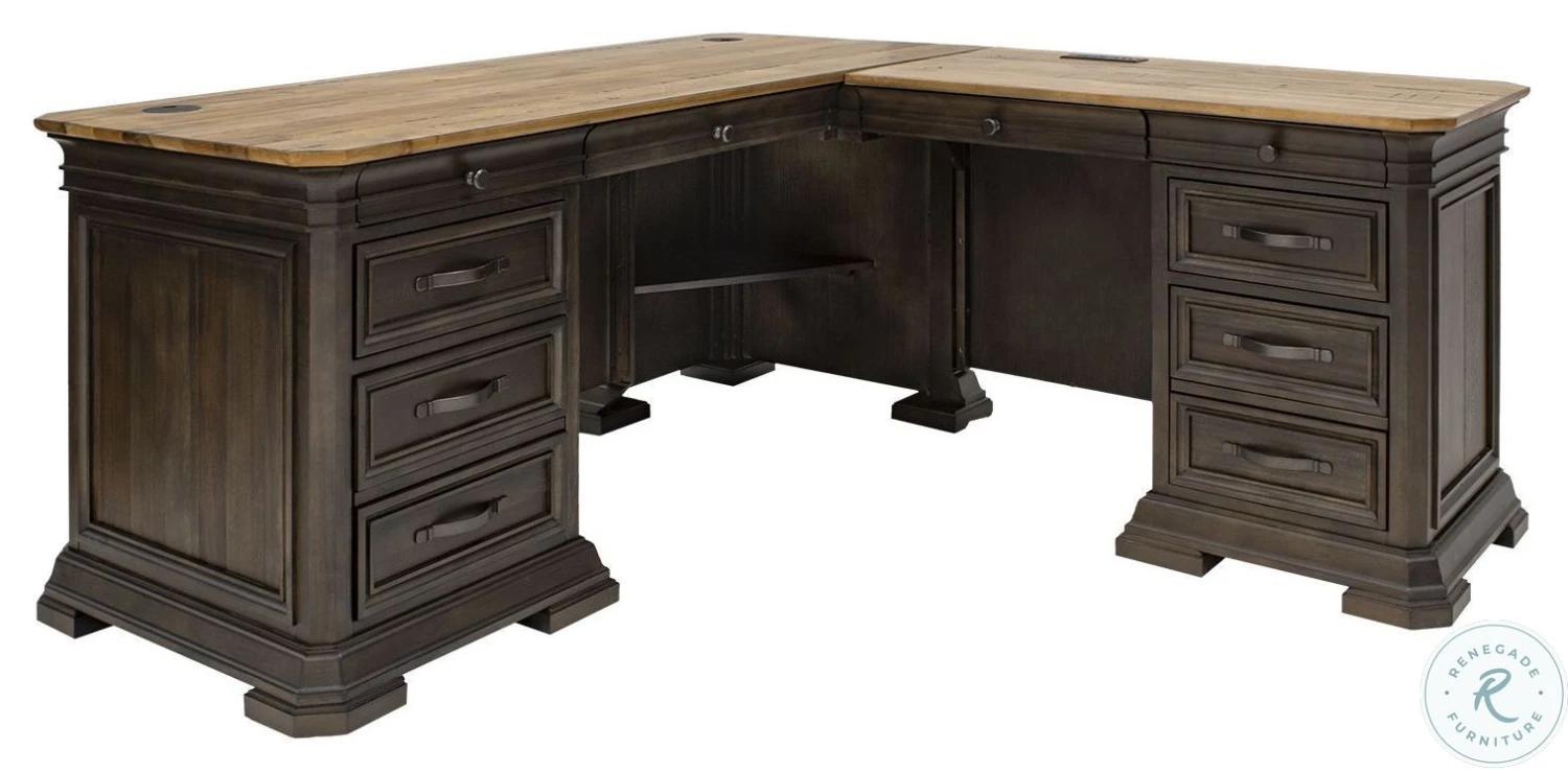 The Sonoma collection provides elements to create a truly inspirational office environment. Hand planked wood veneers in a rich, dark roast finish the color of freshly brewed coffee, show highlights of natural wood that has aged and is mildly distressed. Distressing includes rasping, chopping and worm holes, solid wood plank tops that accent the dark finish and emphasize the wood’s natural beauty for two-tone authenticity. Antique bronze hardware adds a shimmering touch.