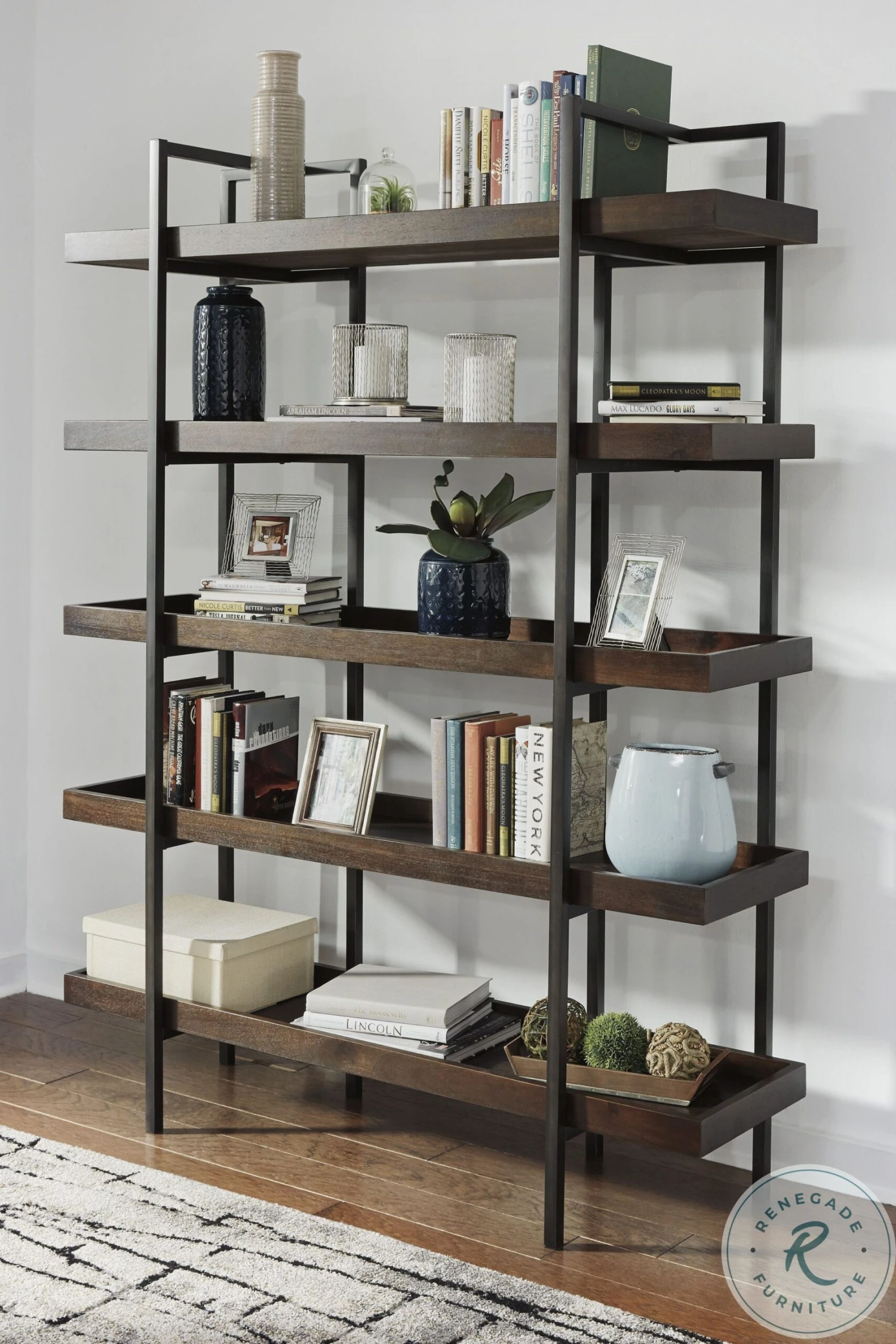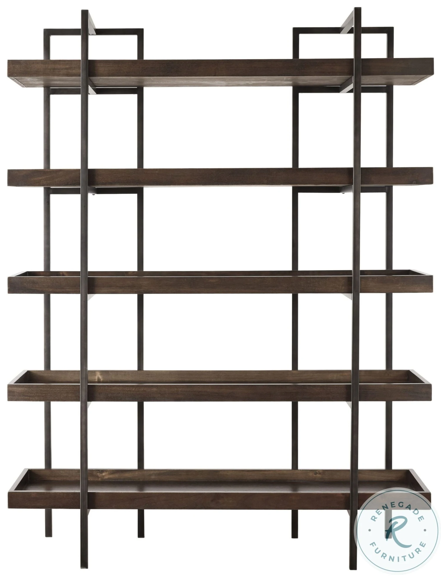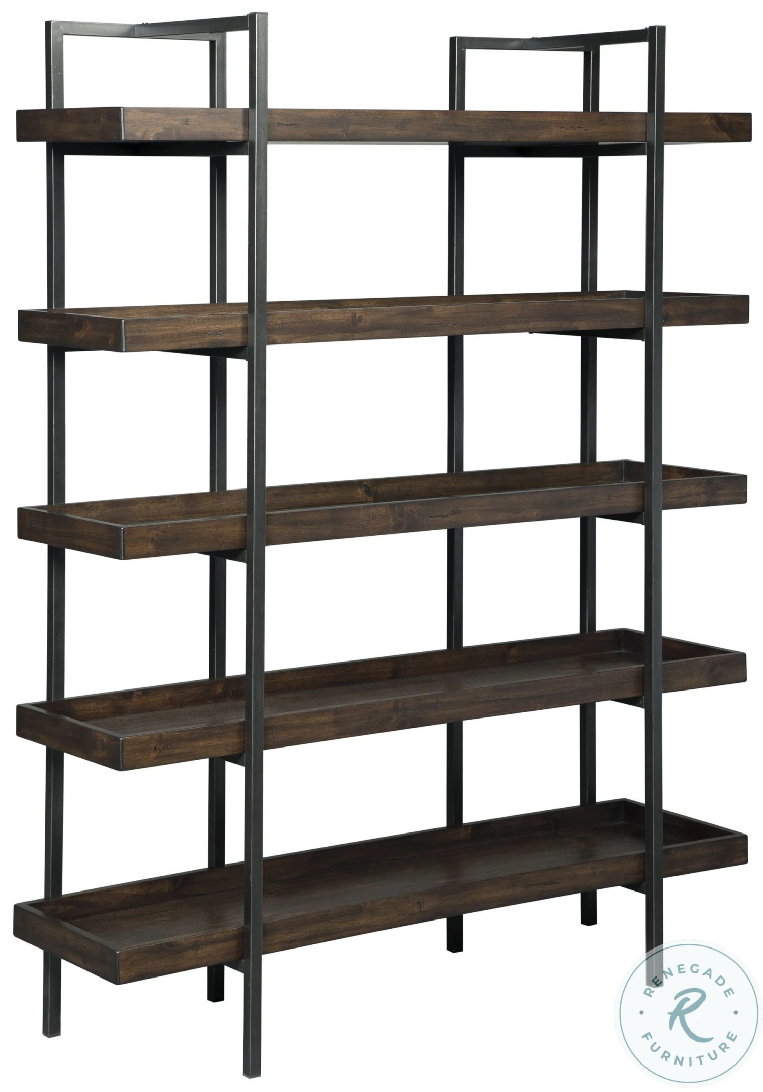 For fans of urban industrial design, this Starmore Collection steals the show. Table top is crafted with a mix of acacia veneer and wood beautified with an oiled walnut-tone finish. Sleek tubular metal frame and linear, large scale pulls pull it all together. Cutout shelf on desk’s front side incorporates added dimension.