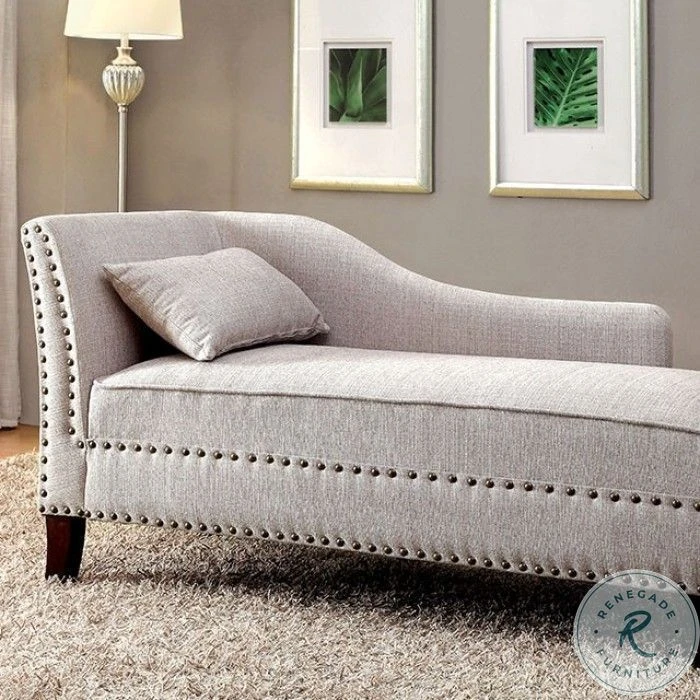 Add subtle color to your bedroom or living room with this stylishly upholstered chaise. The curved arm adds emphasis to the lengthy structure while nailhead accents pop against the smooth fabric.