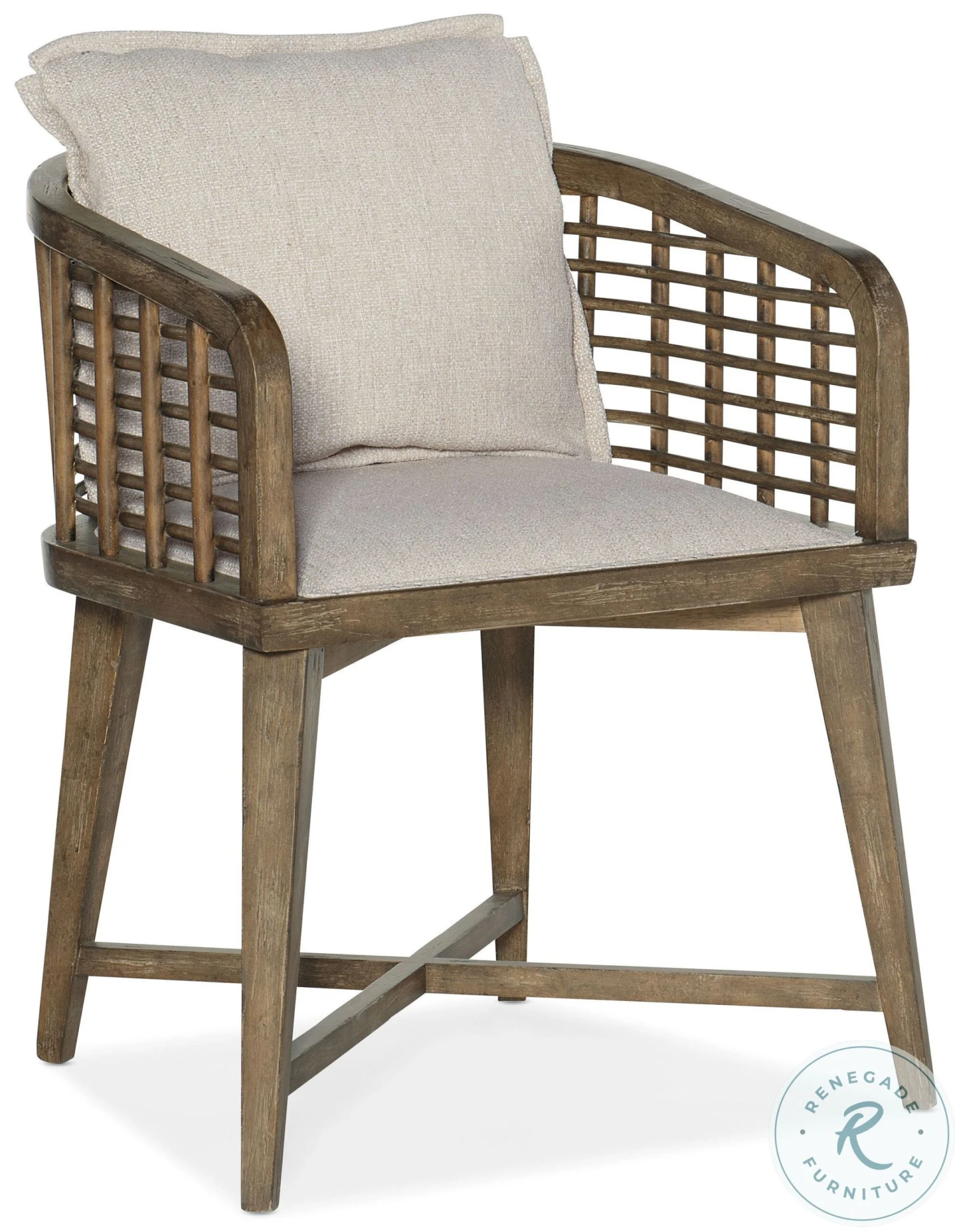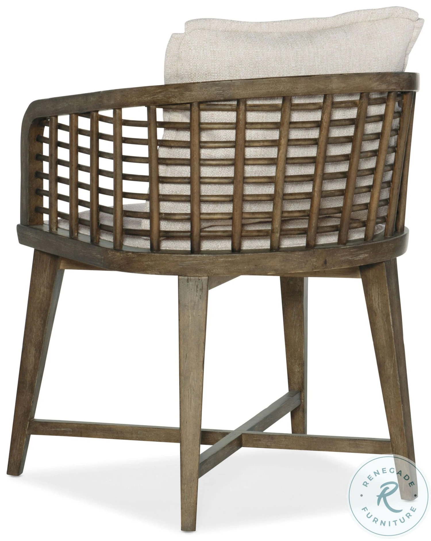 - Barrel Back Chair features Fabric Content 83% Polyester, 17% Acrylic, zuri cream performance fabric upholstered, barrel back design, loose back pillow, X style stretcher, nailhead trim on seat, lattice motif cane back, tack in floor glide and Maximum Weight Capacity 250lbs.