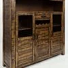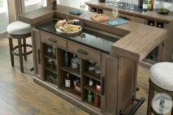 - Buffet features 2 drawer with metal ball bearing glides, 2 wood panel doors and 2 glass doors provide additional storage behind bar, adjustable shelves provide accommodating storage space behind doors and marble inlay on top