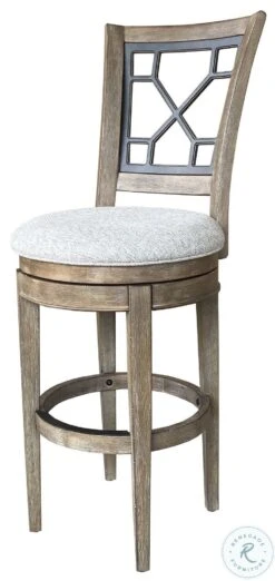 - Stool features upholstered seat, grid back design, swivel mechanism and circular stretcher protected by metal kick plate