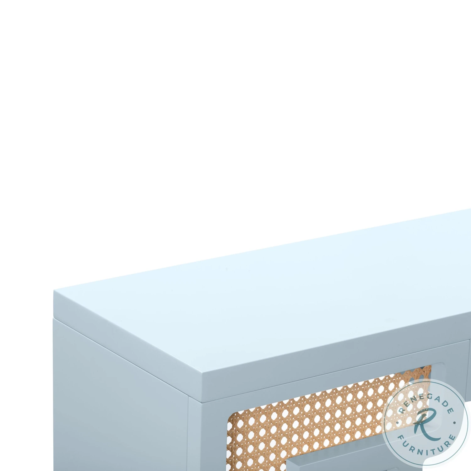 Inspired by the Art Moderne style, the Suzie collection alludes to Palm Springs art deco design through its bold colors and curvaceous form. Suzie collection features a soft close drawer for practicality, while its rounded edges and woven rattan details add a playful twist. The Suzie will cement itself as the perfect balance between contemporary living with a touch of glamour in your space.