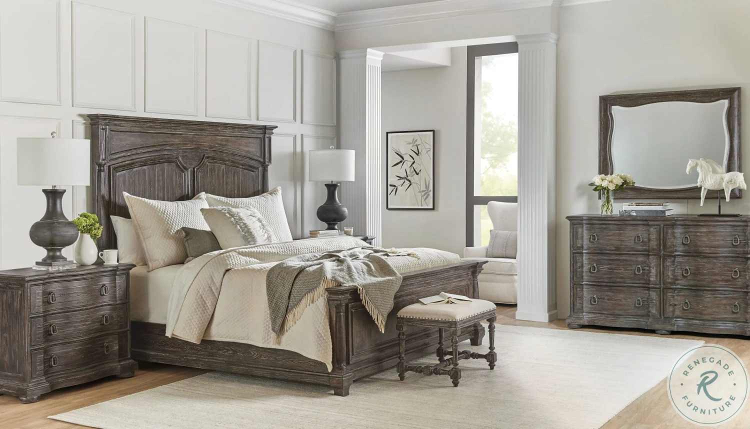 Inspired by a two week trip through Europe in search of architecture and antiques full of vintage character, Hooker Furniture introduces the Traditions Collection. Targeting a design oriented consumer with a sophisticated style, the whole home collection one of the largest in company history uses familiar forms to present a nostalgic, yet comfortable aesthetic. Layered with fresh elements, the group offers an updated presentation that speaks to a storied past, yet easily transitions into todays interiors.