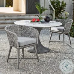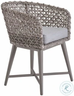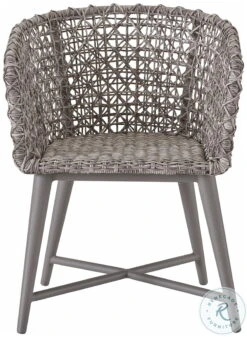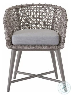 - Chair features fog and soft gray finish, fog powder coat, wicker frame and sunbrella fabric