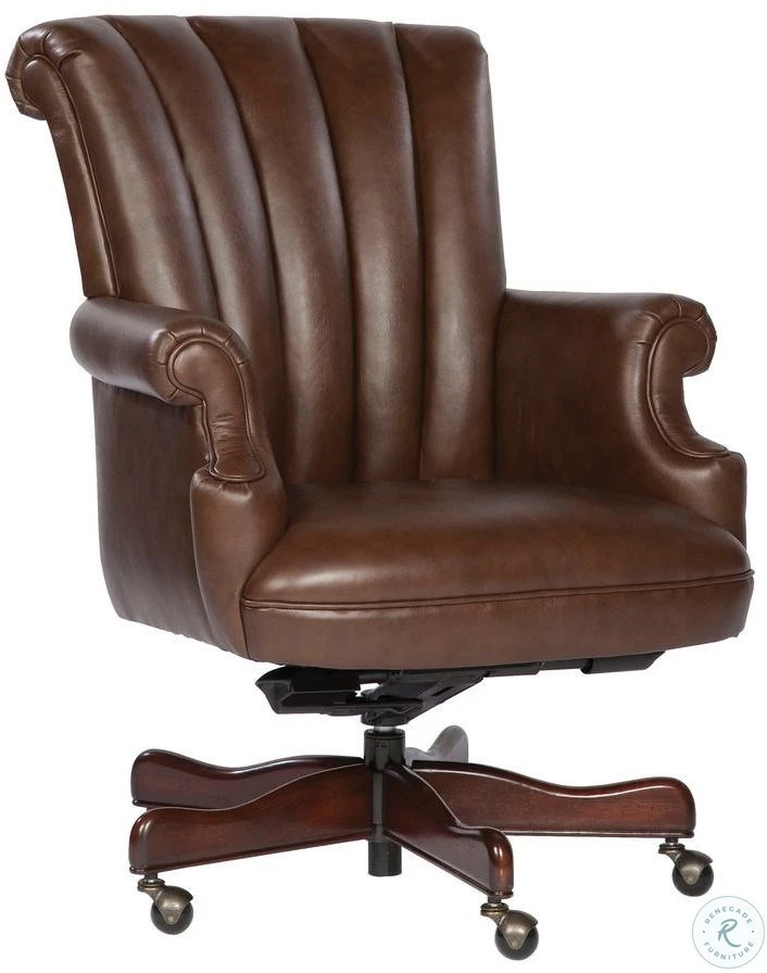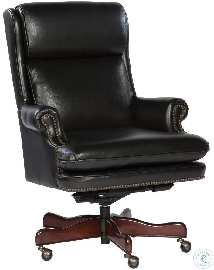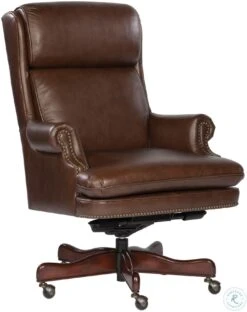 - Chair Features beautiful genuine lear antique brass nailhead trim five-point wood base casters for easy mobility pneumatic lift mechanism and tilt mechanism